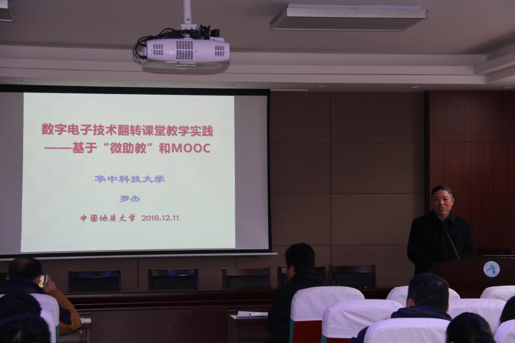 12月11日上午,华中科技大学罗杰教授应邀来永利官网作了题为《数字电子技术翻转课堂教学实践——基于“微助教”和MOOC》的报告。