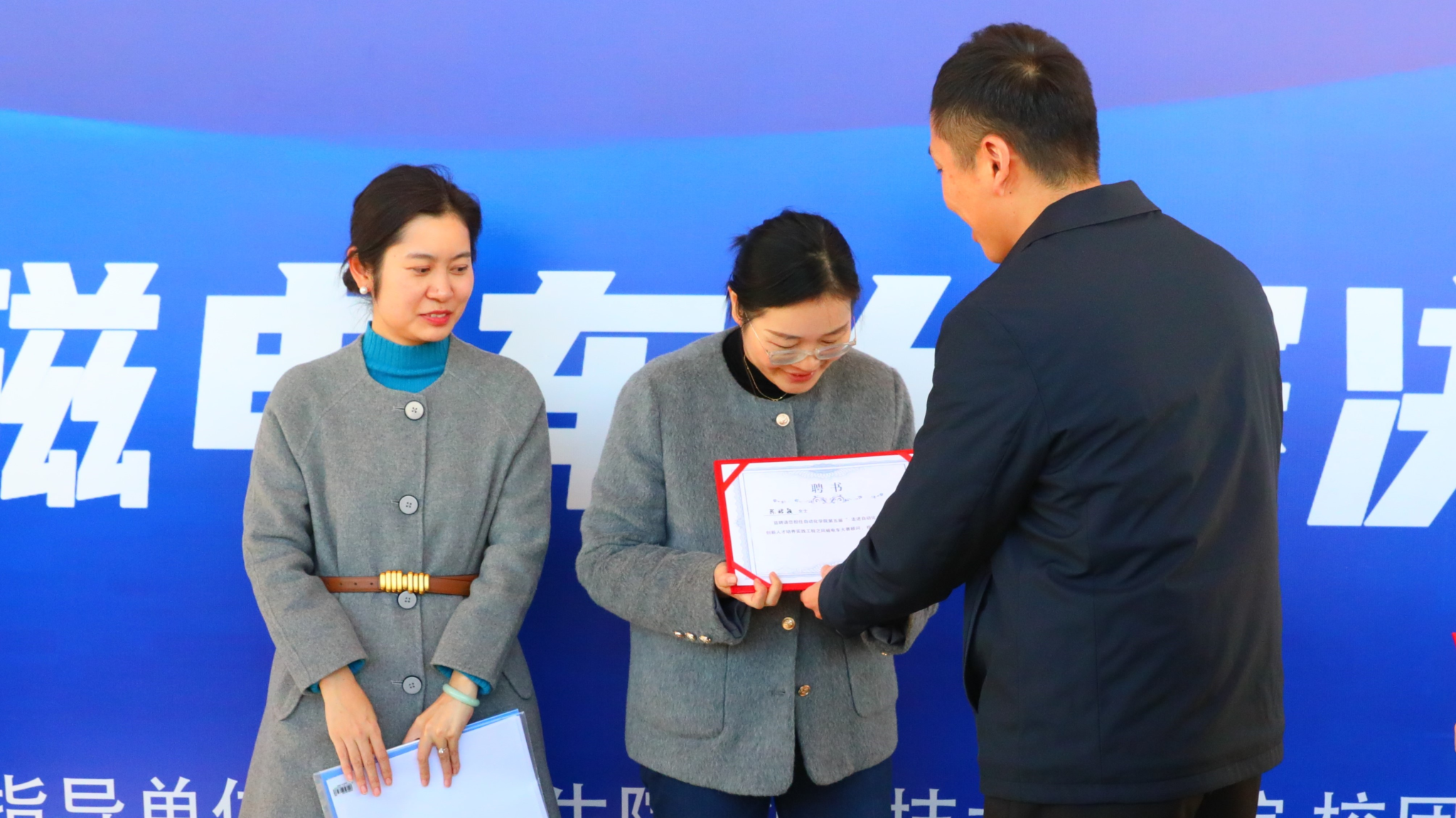 开幕式上,参赛学生代表张传祺分享参赛心路历程,讲述了团队逐渐摆脱青涩,在多学科集合的赛事中摸爬滚打,攻克代码与传感器难题,于挫折中砥砺前行的成长与收获。裁判代表李子强会长在宣誓中承诺坚守公平公正,助力选手提升技能、锤炼团队精神。校团委实践部主任何清吟指出,“风磁电车”大赛自创办以来,已经成为一个集科学性、趣味性和观赏性于一体的综合性赛事,并且作为一个平台不仅为大家提供了一个将理论知识转化为实际应用的机会,更重要的是激发了大家对科技创新的热情,促进了实践能力和团队合作精神的培养。最后,何老师期盼各位参赛同学能够珍惜参与比赛的宝贵机会,勇于挑战自我,不畏失败。双创办公室主任陈昭颖指出,“风磁电车”赛事不仅是同学们智慧与技能的展示平台,更是学院创新精神和实践能力的重要体现,大赛作为一个兼具兴趣启发、团队协作和实践能力的赛事,为扎实提高同学们竞赛能力、创新能力,以及理论结合实践能力搭建了重要平台。最后,学院党委副书记王向东为两位嘉宾颁发聘书,宣布第九届风磁电车大赛正式开幕!