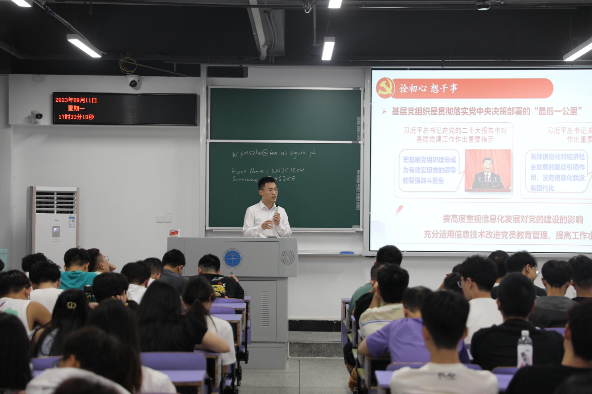 为引导研究生新生坚定理想信念,坚守初心使命,勇于担当作为,更好融入新的学习科研和生活环境,学院结合自身实际和“新工科”专业研究生培养特点,2023年9月11日下午,湖北省高校党建工作样板支部——控制科学与工程博士生第一党支部(以下简称“博一党支部”)在教三楼306面向全体研究生新生举办“红星闪闪伴你行”经验分享会。会议旨在引领研究生新生树立崇高理想,端正学习和科研态度,勇担时代的重任。
