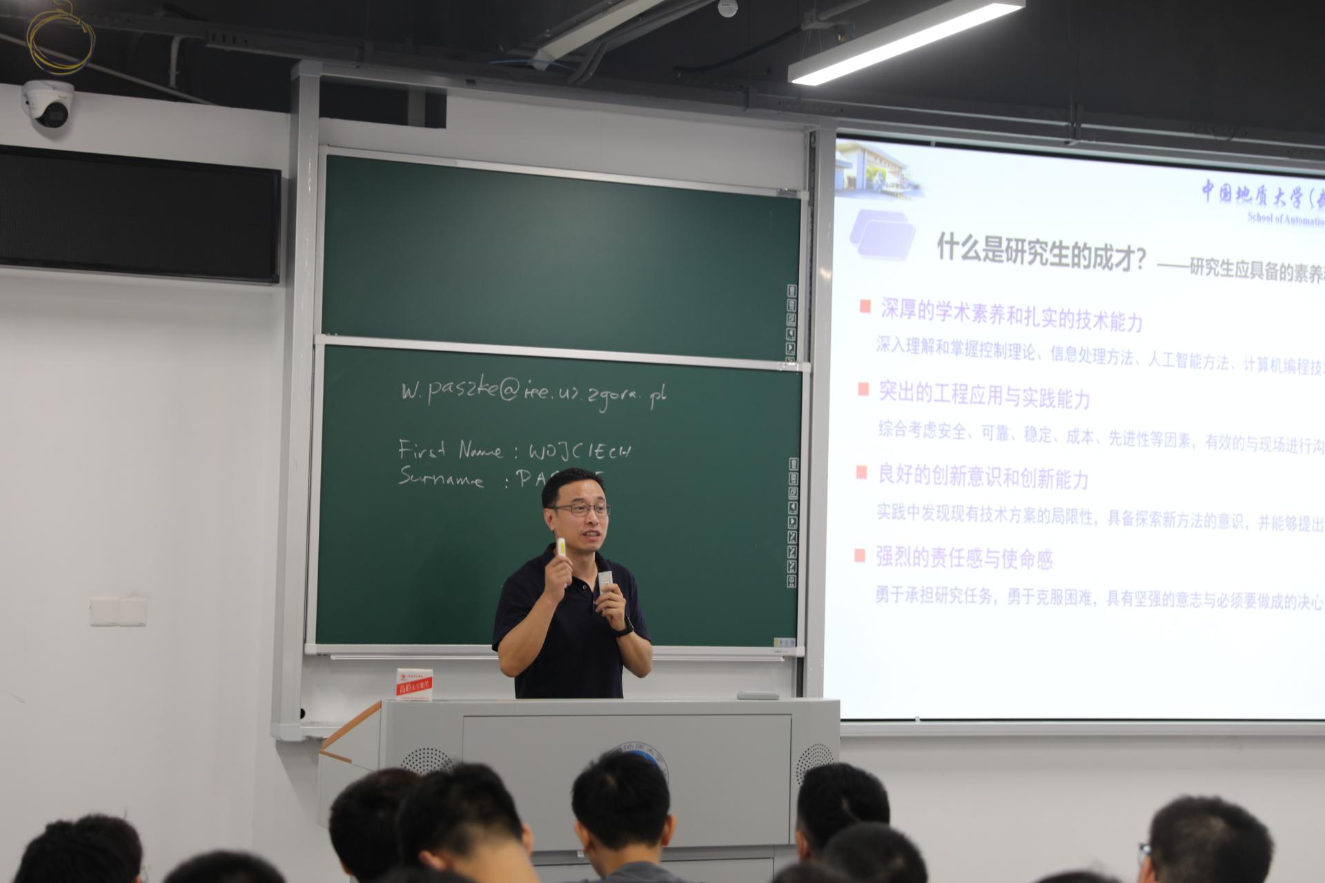 为引导研究生新生坚定理想信念,端正学习态度,把握科研方向,9月11日下午,永利官网在教三楼306开展“研究生‘开学第一课’——论文写作与项目研究”专题讲座,讲座邀请波兰绿山大学Wojciech Paszke教授,永利集团3044官网欢迎您安剑奇教授做主题分享,副院长陈略峰教授、党委副书记王向东、自动控制系万雄波教授、研究生辅导员王艺霖,以及2023级研究生新生共同参加。