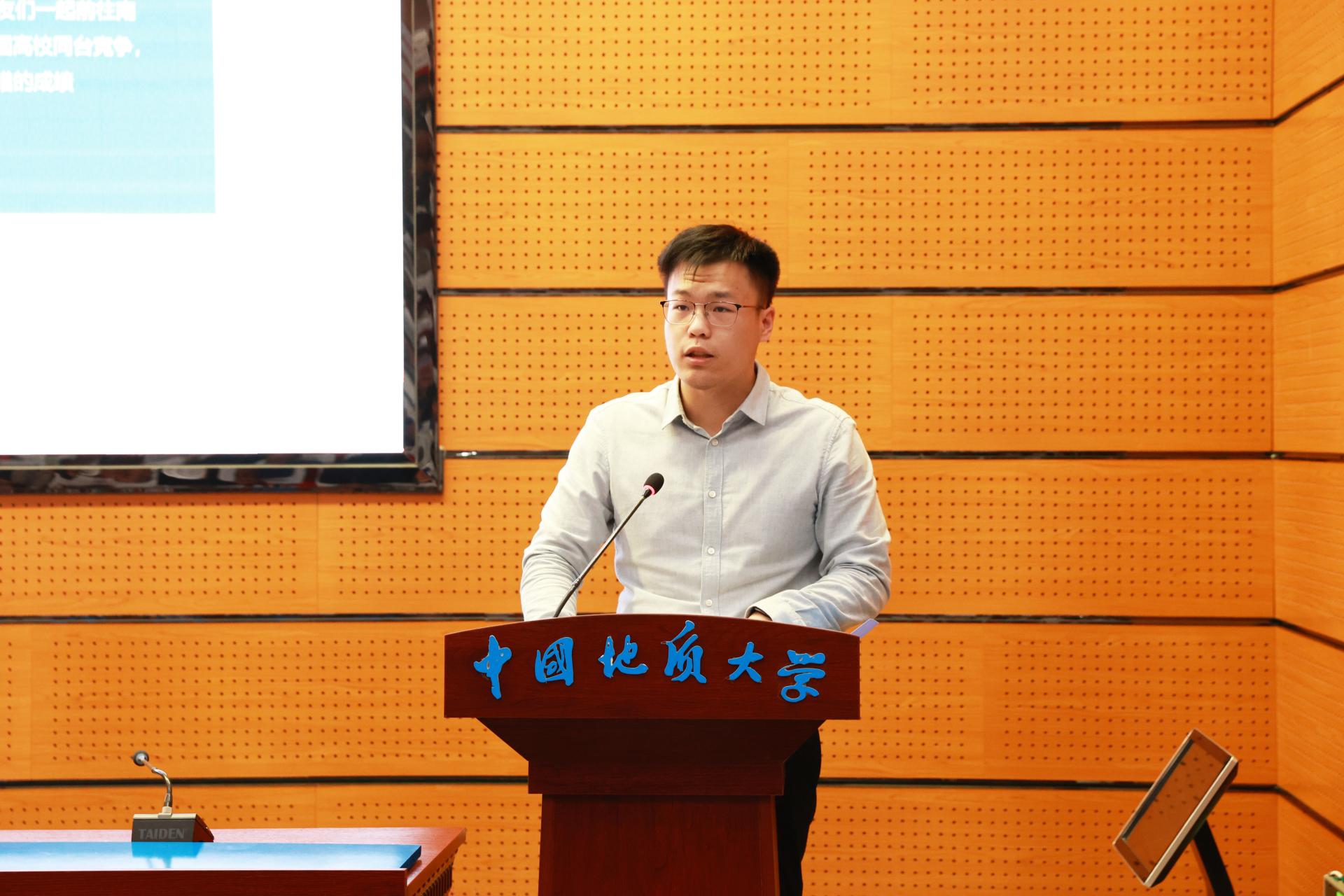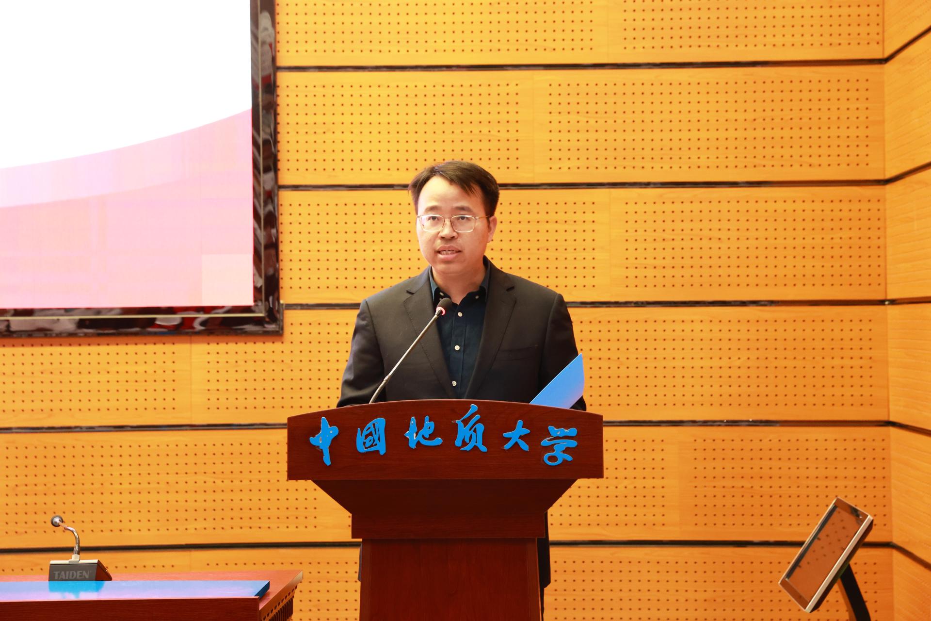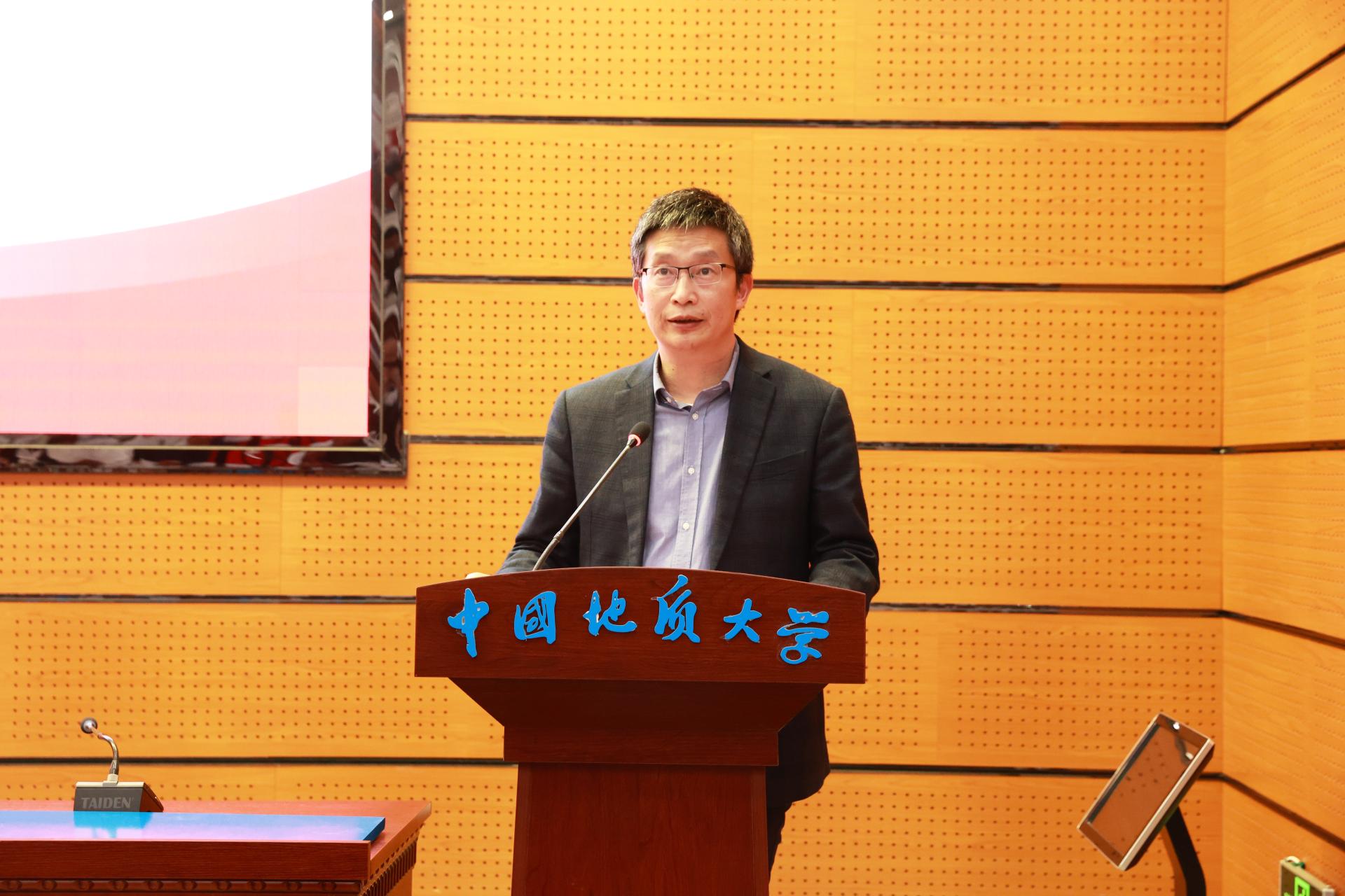 教师代表杜胜教授在发言中向同学们提出了三点希望,坚定专业自信、提升专业能力、强化专业担当。希望同学们以专业为基础,担当时代重任,传承“艰苦朴素,求真务实”的地大精神,为实现中华民族伟大复兴的中国梦而努力奋斗