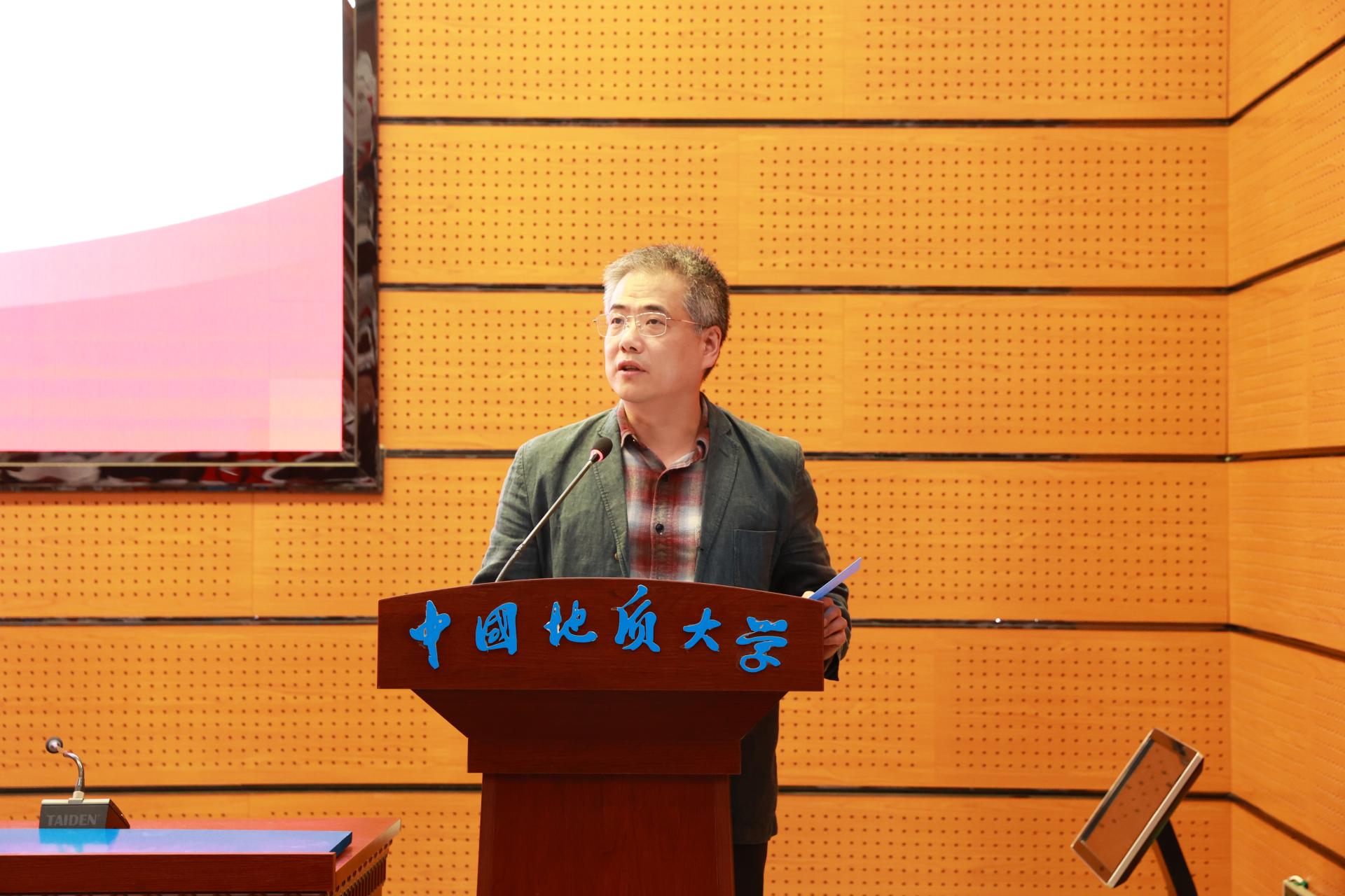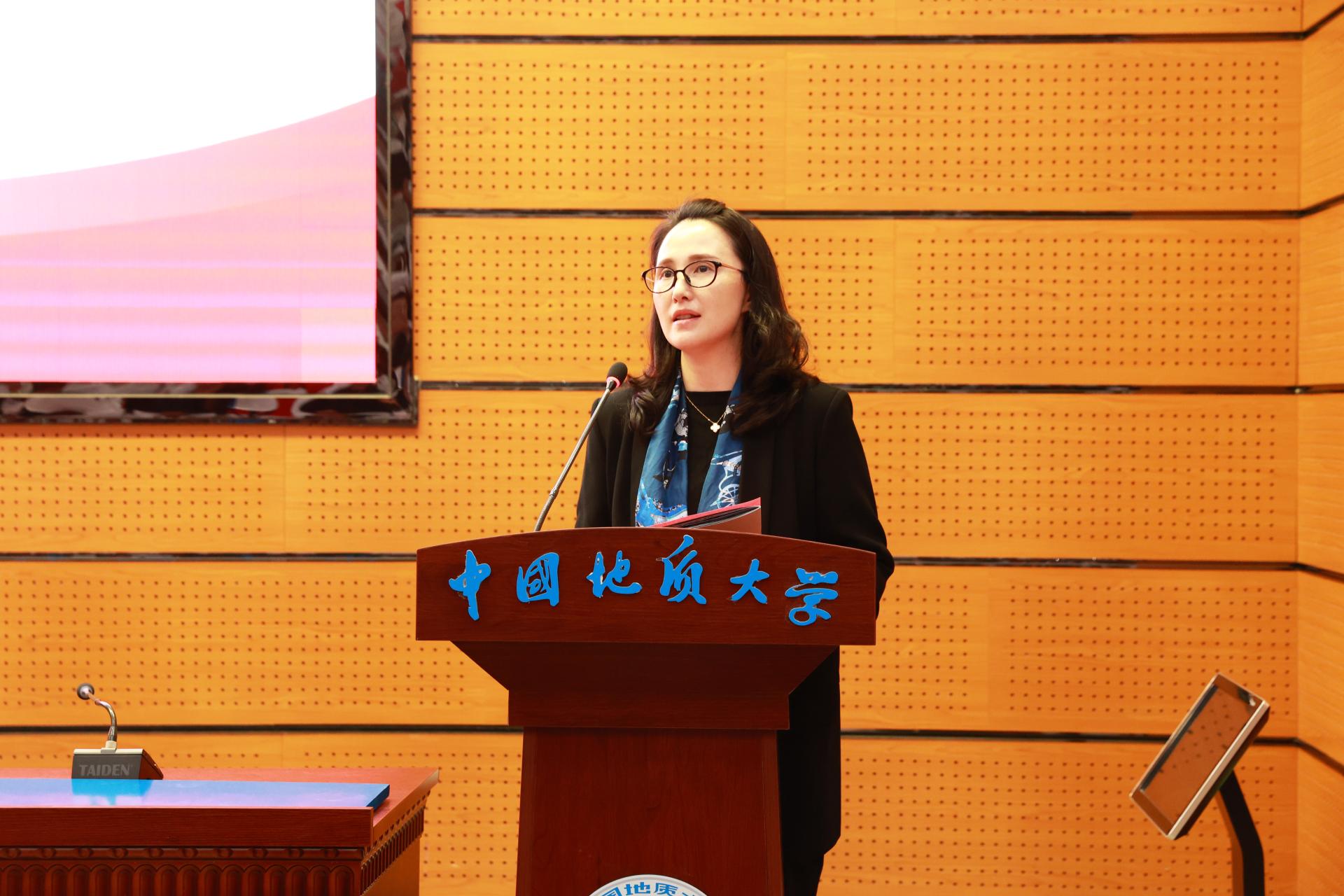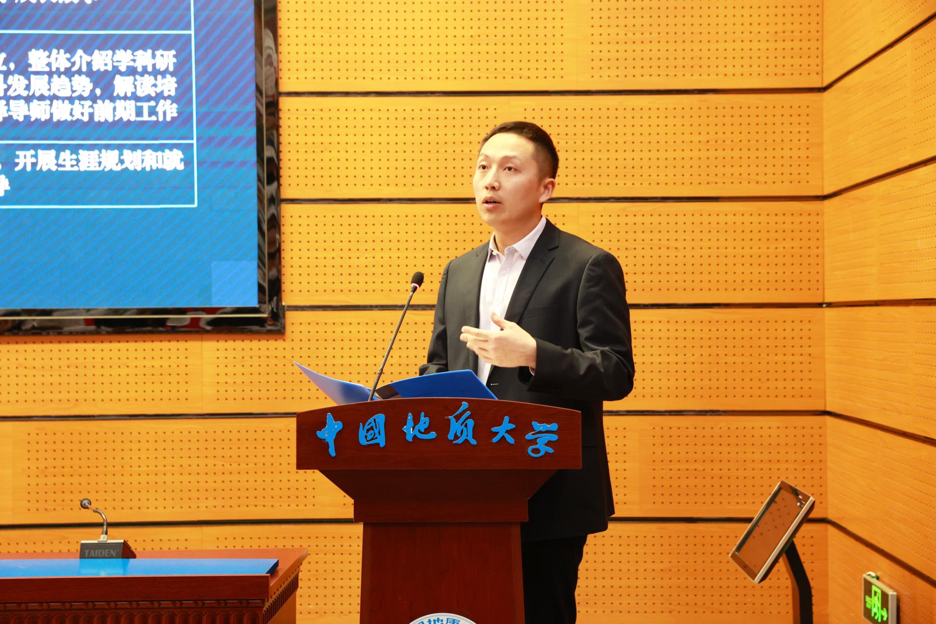教师代表杜胜教授在发言中向同学们提出了三点希望,坚定专业自信、提升专业能力、强化专业担当。希望同学们以专业为基础,担当时代重任,传承“艰苦朴素,求真务实”的地大精神,为实现中华民族伟大复兴的中国梦而努力奋斗