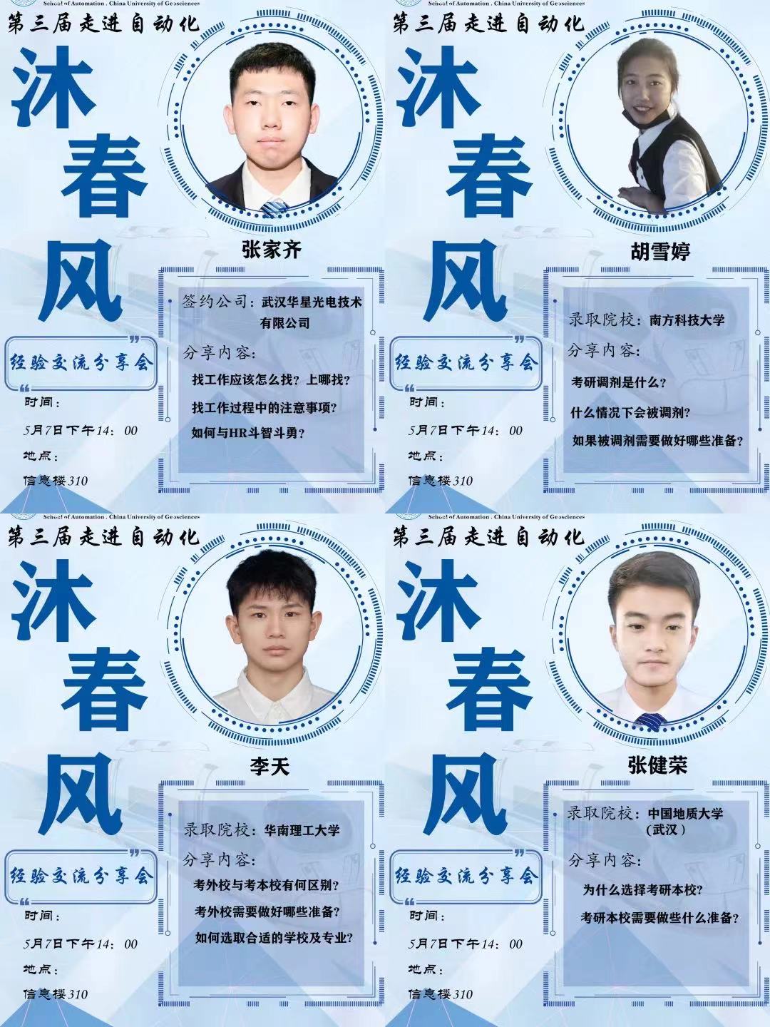 至此,第三届“走进自动化”系列活动之“沐春风”考研求职经验分享交流会圆满完成,也请大家持续关注后续各项活动。