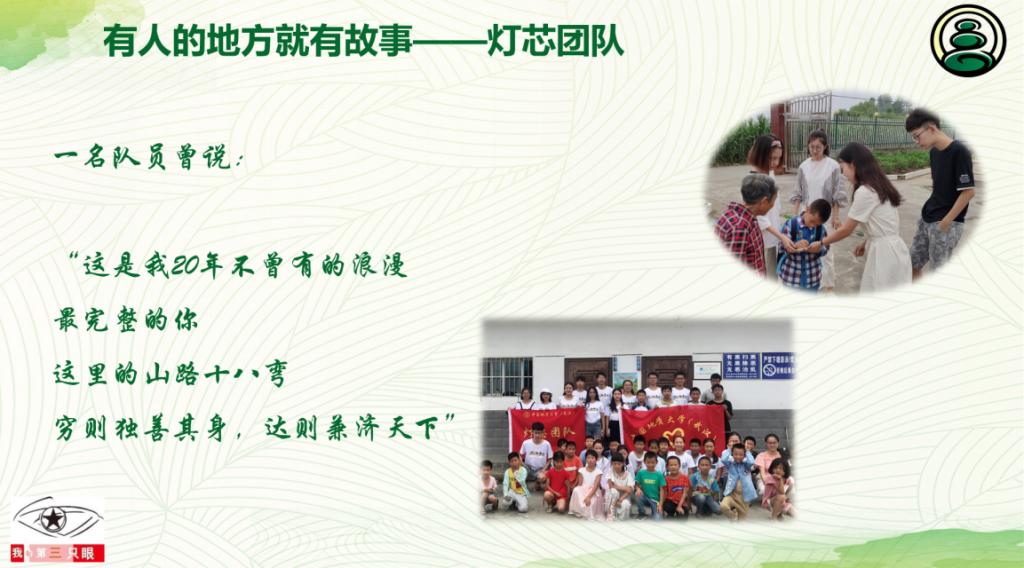 随后,“第三只眼”的同学详细介绍了他们到乡村参加支教的过程,从他们对支教过程中的一些实例的分享中,大家感受到了支教生活和帮助他人的快乐感,引发了大家的共鸣。让更多的人了解我们地大对国家扶贫工作的贡献,使很多同学也想投身于支教,献上自己的一份力量。