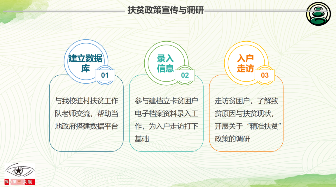 活动之始,强调团会纪律,认清团员身份,领悟党的精神,提高自己的思想意识。主持人为同学们介绍了团会召开的时代背景以及召开的目的与意义,“第三只眼”宣讲的同学为大家介绍了我们国家有关扶贫的政策。