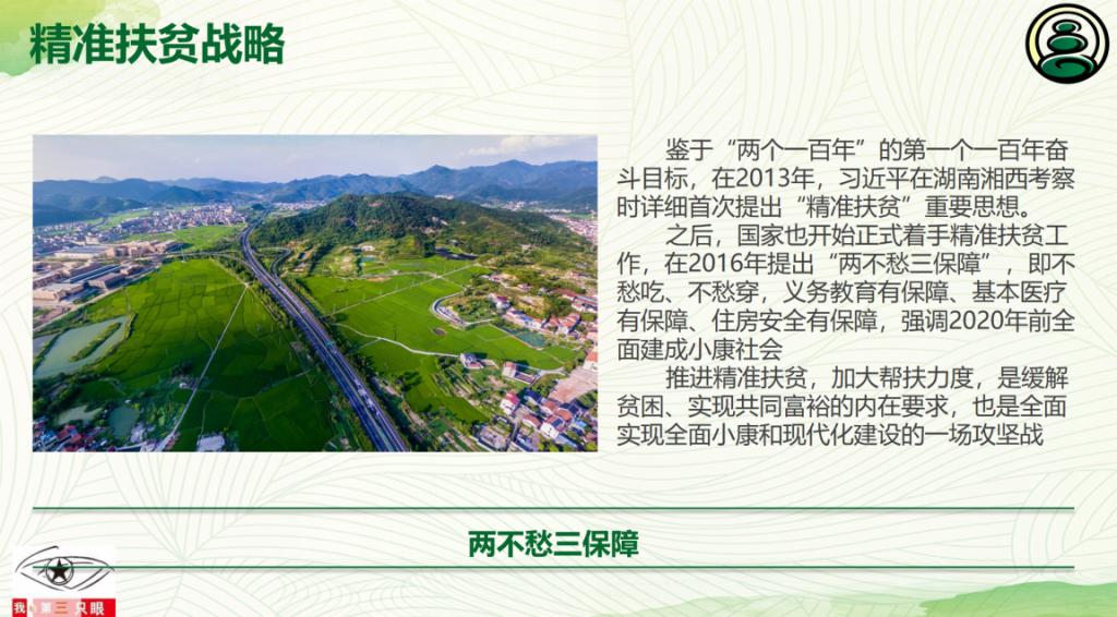 宣讲开始,先是王怡然介绍国家政策背景,两个一百年奋斗目标:第一个一百年,是到中国共产党成立100年时全面建成小康社会;第二个一百年,是到新中国成立100年时建成富强、民主、文明、和谐、美丽的社会主义现代化强国,以及精准扶贫战略、乡村振兴战略。