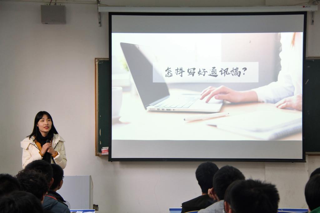 王培培老师首先介绍了通讯稿与推文的区别、通讯稿的种类以及通讯稿的内容结构。其次,以日常工作中的通讯稿为例,分析优秀的讯通稿,并现场互动与同学们一起修改通讯稿,详细地讲解了通讯稿的撰写要求。她还规范了永利官网团学各部门通讯稿的书写格式,举例说明了不同类型的通讯稿照片的拍摄方法以及通讯稿的时效性,让新生干部们对“如何写好通讯稿”有了更深刻的认识。