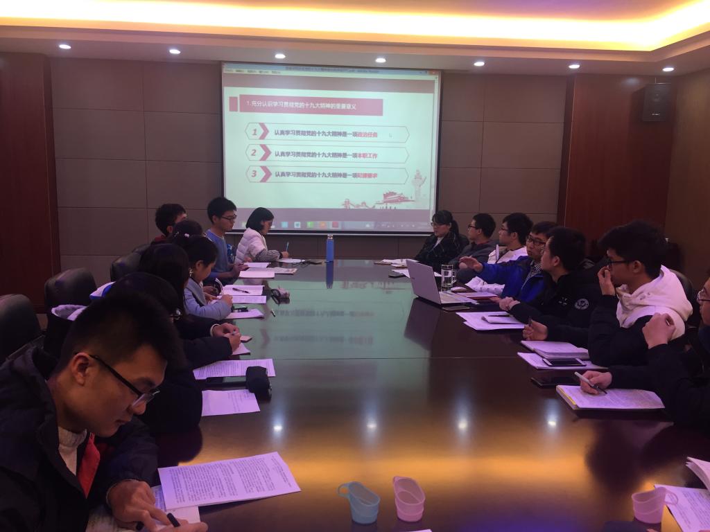 中国共产党第十九次全国代表大会于2017年10月18日至24日在北京隆重召开,这是包括广大青年学生在内的全党全国各族人民共同关注的一件大事,为深入学习贯彻党的十九大精神,永利官网深入开展了系列学习实践活动。2017年11月,永利官网党委书记董浩斌、副院长曹卫华、副院长金星、副院长陈鑫、党委副书记何建新、团委书记谭文伦及办公室组织人事秘书孔娟参加学生党支部支部会议,带领学生党员学习党的十九大精神。