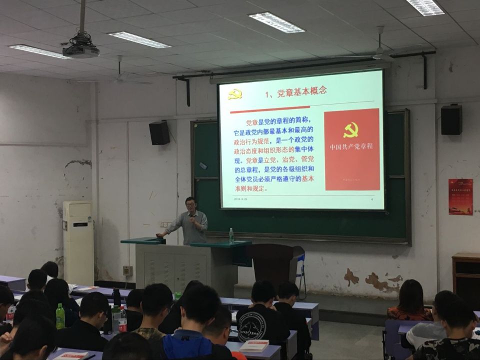 (通讯员 陈伟)2018年4月26日下午4点,永利集团3044官网欢迎您分党校入党积极分子培训班党课第九讲在教三楼207教室举行,本次党课主题是“学习实践党章、加强党性修养”,主讲老师是刘亚东老师。