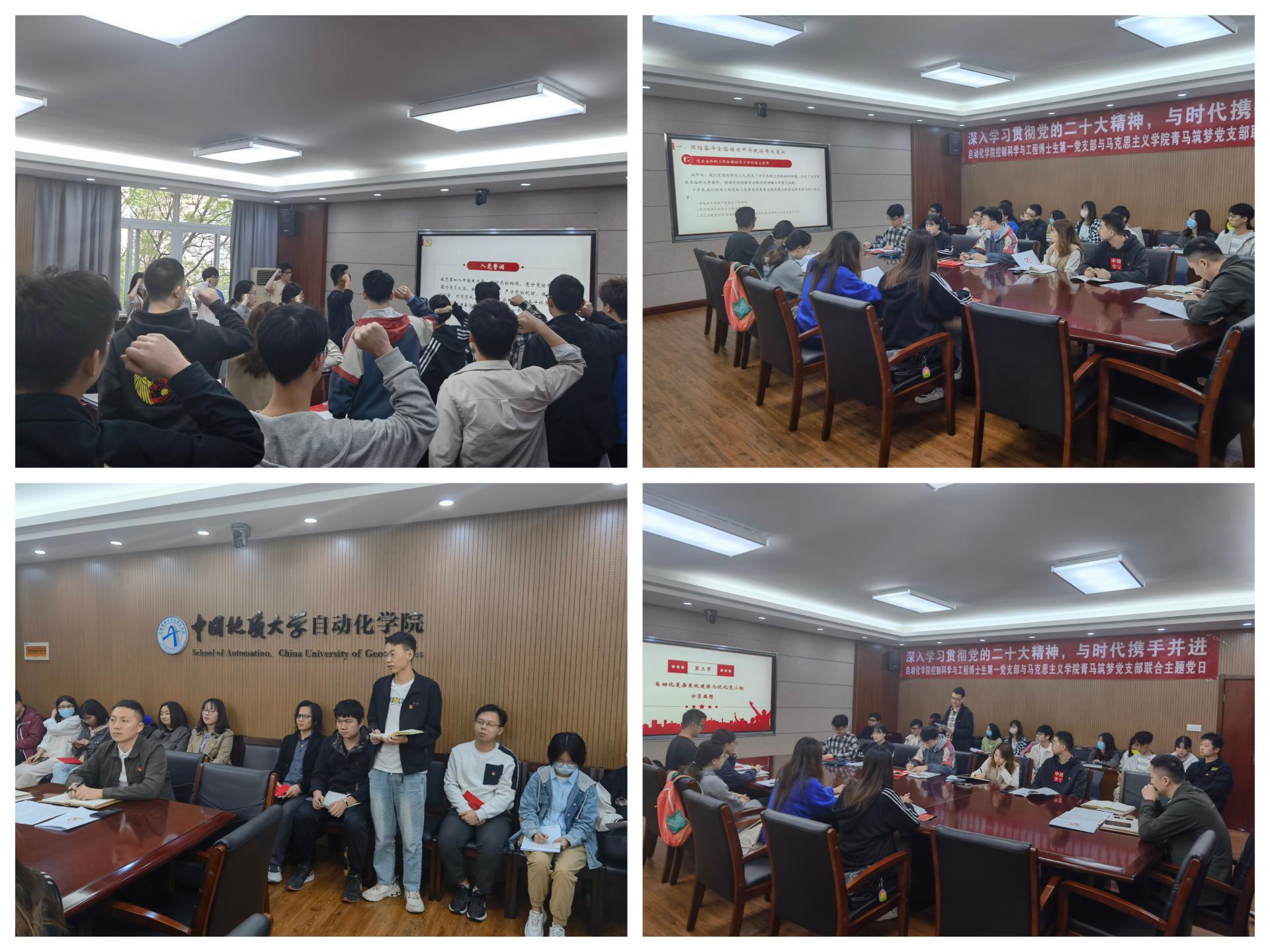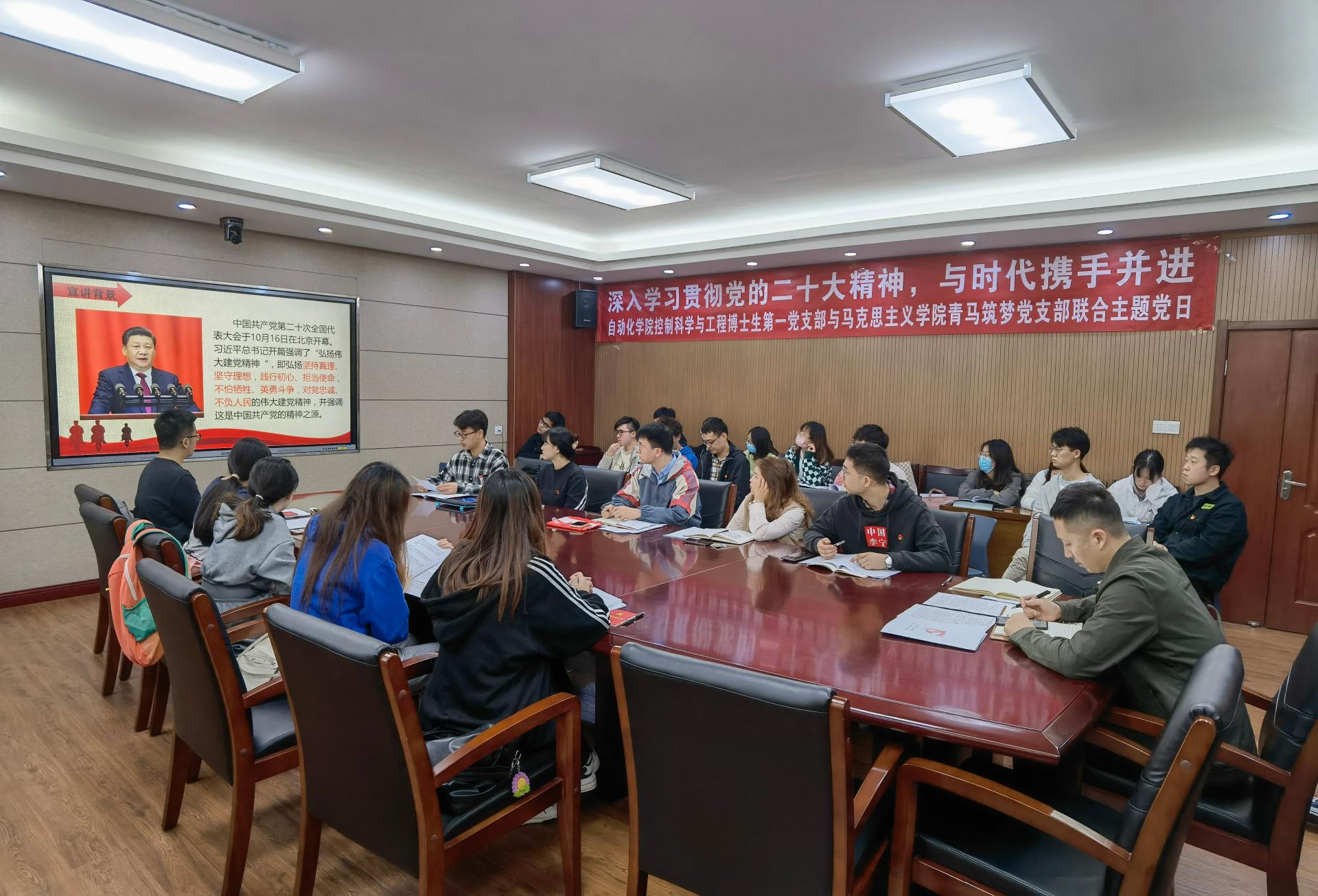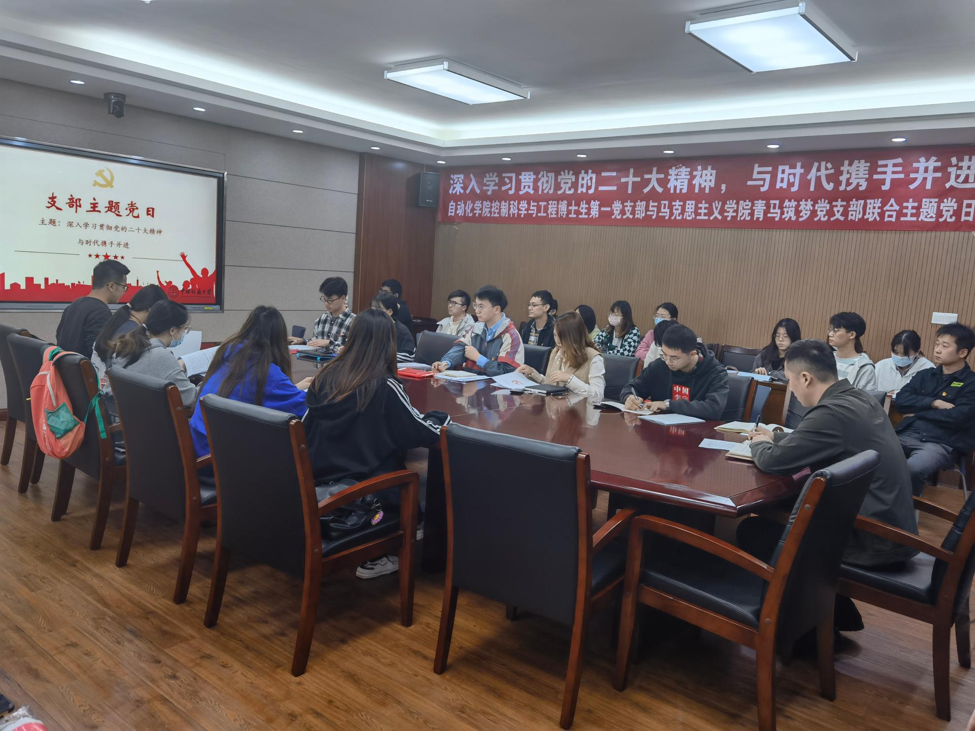 (通讯员 陈文虎 陈子怡)为深入学习贯彻党的二十大精神,进一步增强基层党组织的组织力、凝聚力和战斗力,积极探索学生党支部联建共创新路径,10月30日上午,湖北省高校党建工作样板党支部、永利集团3044官网欢迎您控制科学与工程博士生第一党支部(以下简称“博一党支部”)与学校先进基层党组织、马克思主义学院青马筑梦党支部(以下简称“青马筑梦党支部”)在信息楼316会议室开展联合主题党日活动。永利集团3044官网欢迎您党委副书记王向东、永利集团3044官网欢迎您研究生辅导员王艺霖、博一党支部以及青马筑梦党支部全体党员参与了本次主题党日。主题党日由青马筑梦党支部书记耿学栋同志主持。