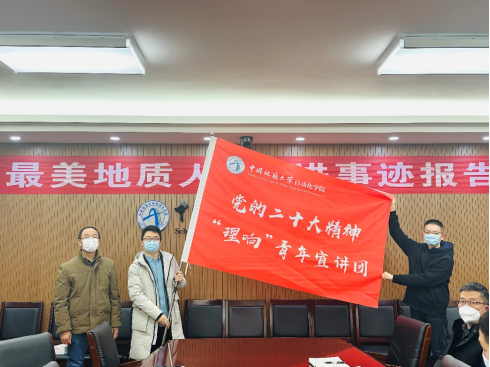 自党的二十大胜利召开以来,永利集团3044官网欢迎您党委迅速组织、积极响应,按照“学习贯彻党的二十大精神 凝聚奋进新征程强国力量”的工作思路,组织专业教师、青年榜样、党团骨干成立党的二十大精神“理响”青年宣讲团,进一步推动党的二十大精神向基层延伸、向师生拓展,使宣讲工作更接地气、更聚人心。会上,学院党委书记董浩斌为宣讲团授旗,学院团委书记黄兰华代表宣讲团接旗。