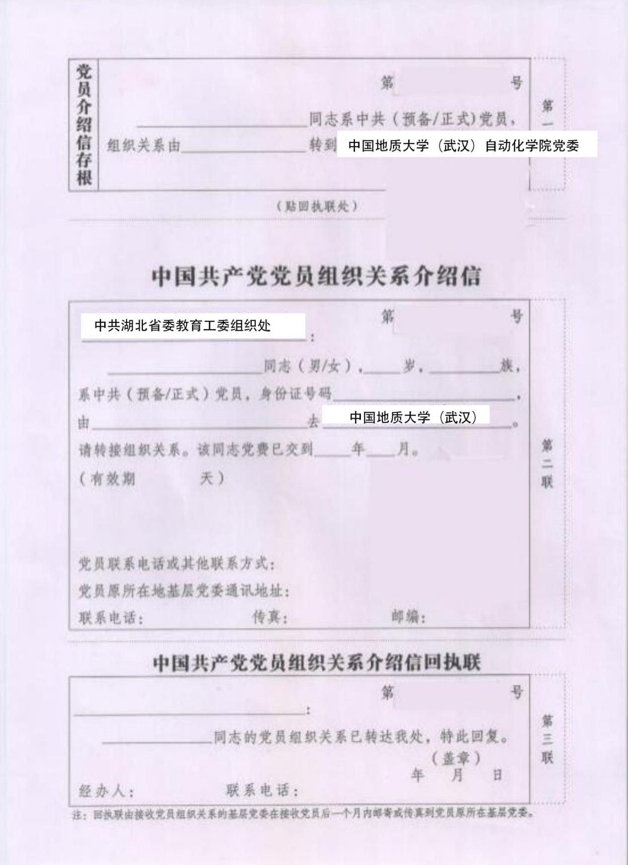 (2)党员组织关系介绍信由转出单位开具后,个人保存,开学后由班级统一收取;