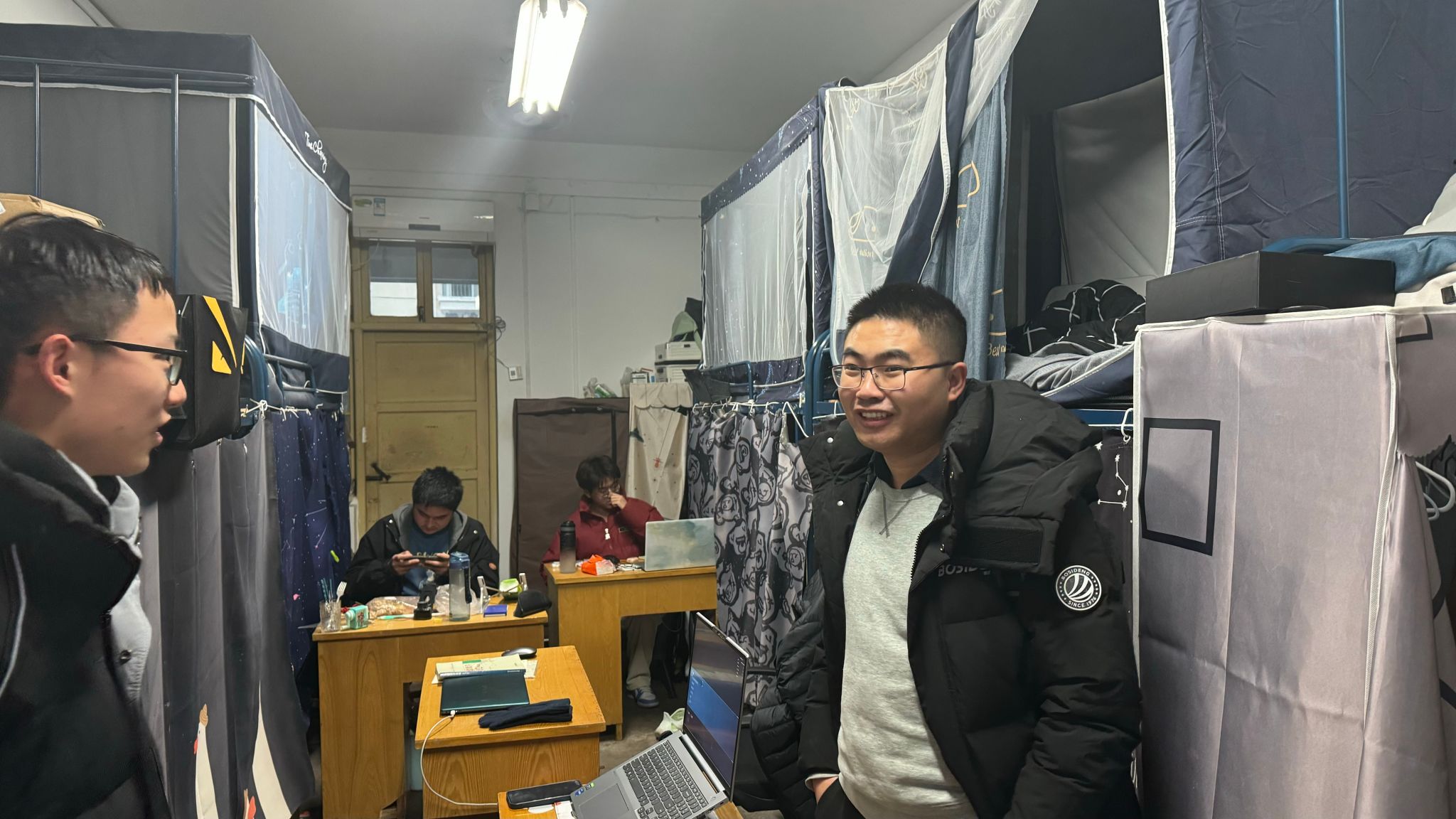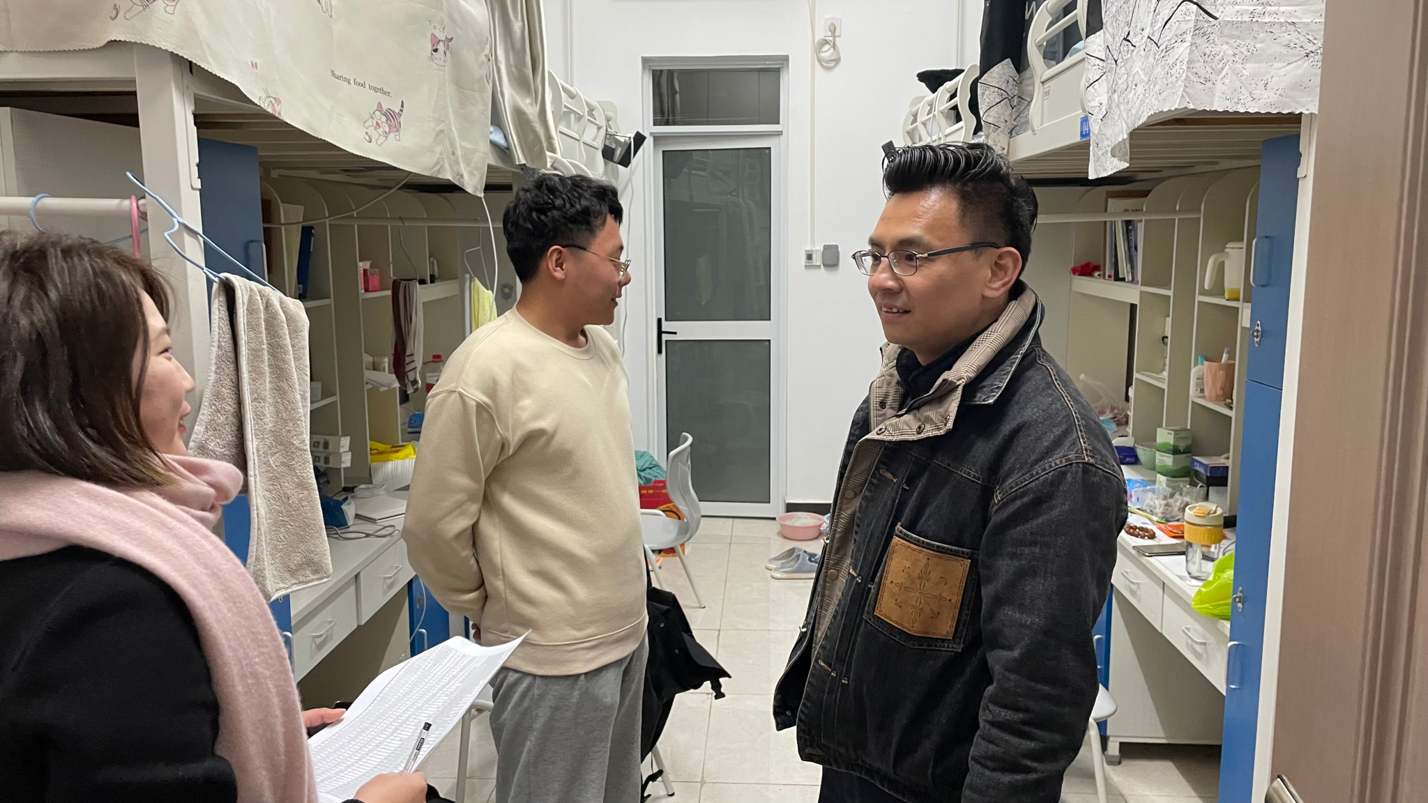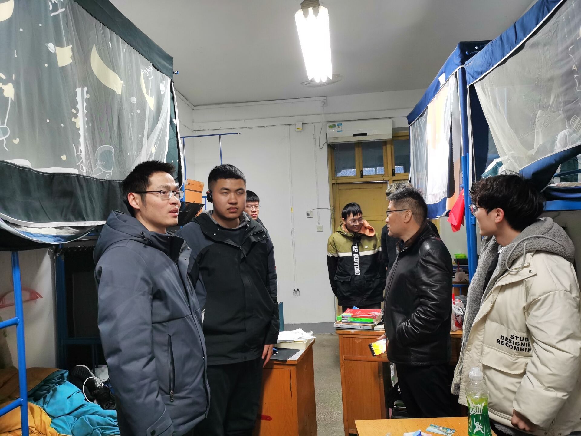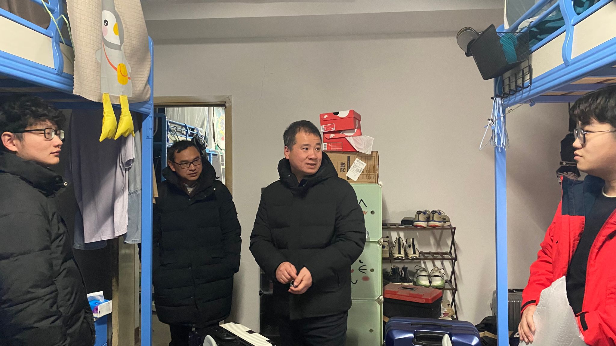 走访宿舍过程中,学院领导老师们分批来到不同年级的学生宿舍和实验室,与自动化学子进行亲切的互动交流。