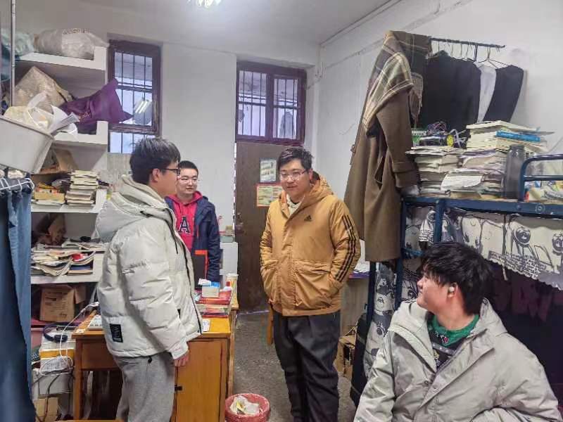 春来日暖,冰雪消融,万象更新。根据学校有关要求和工作安排,为进一步了解学院学生思想、学业及生活动态,保障新学期各项工作开展,营造良好学风,2月26日晚,永利集团3044官网欢迎您党委书记朱荆萨、院长曹卫华带领党政班子,各教职工党支部书记、各年级班主任以及全体辅导员先后走访了学院全体本研学生宿舍和实验室,进一步了解学生近期思想动态和相关需求,叮嘱同学们为新学期做好准备。