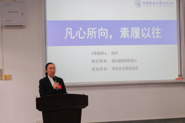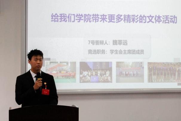 候选人依次上台展示,各候选人从个人优势,学生工作经历以及未来的展望等方面做了五分钟自我陈述,随后,现场的评委就学院特色文化和文体活动建设,部门制度建设、技术水平,以及相关竞赛、如何进行制度改革等问题,向各位候选人进行了提问。对此,每一位候选人都沉着冷静,充分展示了他们对未来的学生工作的各种构想,表达了自己对相关工作的热爱和愿意为同学们服务的诚心,并且尽自己所能地回答了各评委的问题。