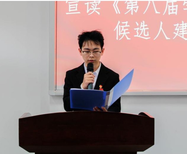 2023届团学组织负责人李想宣读《第八届学生委员会委员候选人建议名单》和《永利集团3044官网欢迎您2024届学生会秘书长建议名单》。
