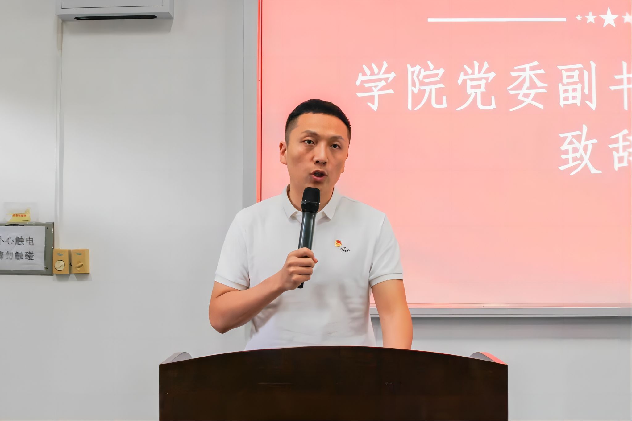 学院党委副书记王向东致辞。恰逢新中国成立75周年,王书记从习近平总书记在五四青年节上的寄语“展现青春作为、彰显青春风采、贡献青春力量” 展开,向学生会提出了三点期望。一是增强引领,提升站位。争取“比青年更懂青年”,帮助青年早立志、立大志。二是锤炼本领,不负韶华。“把学习作为首要任务”,与学院着力培养“创新型和工程应用型的国际化高层次人才”目标同向同行、同频共振。三是牢记使命,担当责任。建设“有高度、有态度、有温度、有速度”的学生会组织。最后,王书记期待各位同学、各位代表做弄潮儿,向潮头立,不负时代责任和青春使命。