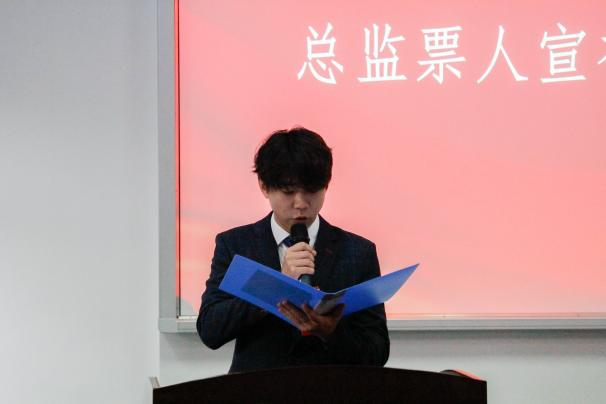 2023届团学组织负责人卢卫家宣读选举办法。