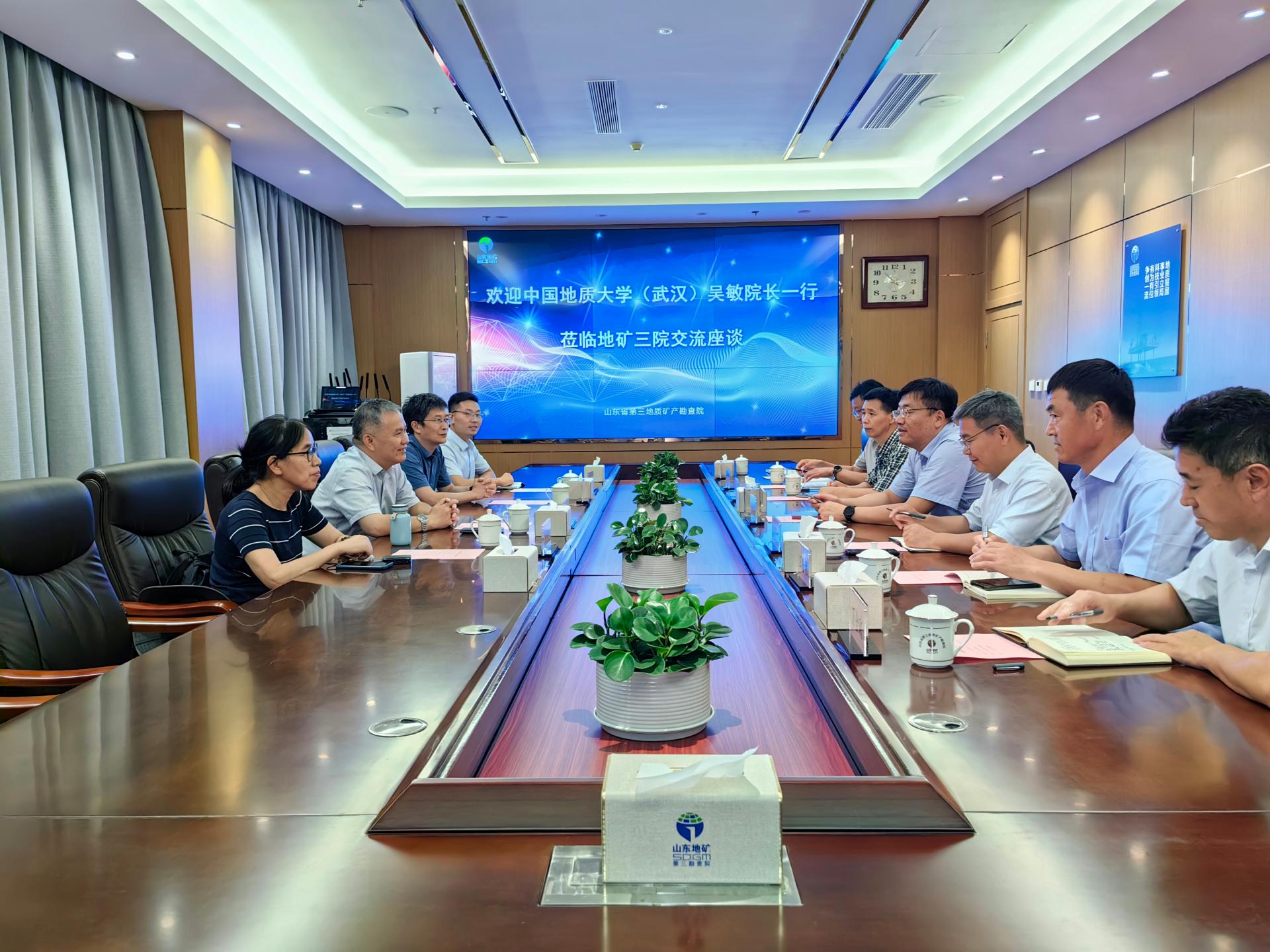 8月24日,永利官网学术带头人吴敏教授、曹卫华院长、赖旭芝教授、陆承达副教授赴山东省第三地质矿产勘查院。山东三院党委书记、院长江国会,党委副书记安茂国,副院长魏绪峰以及地质钻探中心、钻探工程处、总工办相关负责人和专家参与座谈。吴敏教授重温了永利集团3044官网欢迎您与山东三院的合作历史和项目合作情况,曹卫华院长介绍了学院近年来的发展,汇报了双方合作承担的国家自然科学基金重点项目的相关计划。双方围绕深地深海资源勘探、地质灾害防治等内容展开讨论。会后,吴敏教授、曹卫华院长一行参观了山东三院大数据中心。
