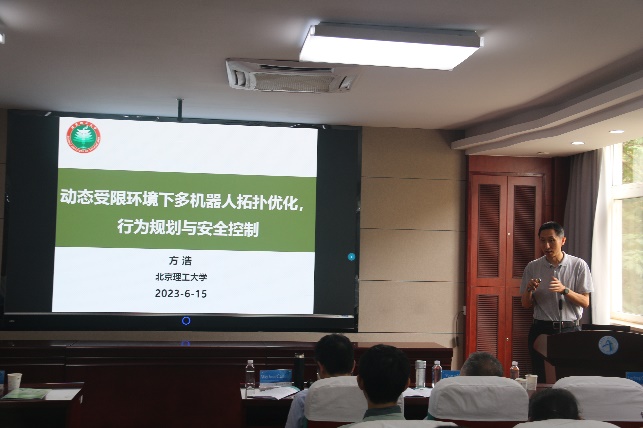 615日上午,邀请北京师范大学王庆国教授作了题为《System identification with poor data in network era》的学术报告;美国Case Western Reserve大学林威教授作了题为《A semiglobal framework for input delay tolerance of nonlinear systems》的学术报告;西北工业大学李慧平教授作了题为《海洋航行器的经济规划与预测控制》的学术报告;北京理工大学方浩教授作了题为《动态受限环境下多机器人拓扑优化,行为规划与安全控制》的学术报告。615日下午,由永利集团3044官网欢迎您陈鑫教授主持了教师科研能力提升研讨会;由加拿大康考迪亚大学苏春翌教授主持了软体机器人专题研讨会。