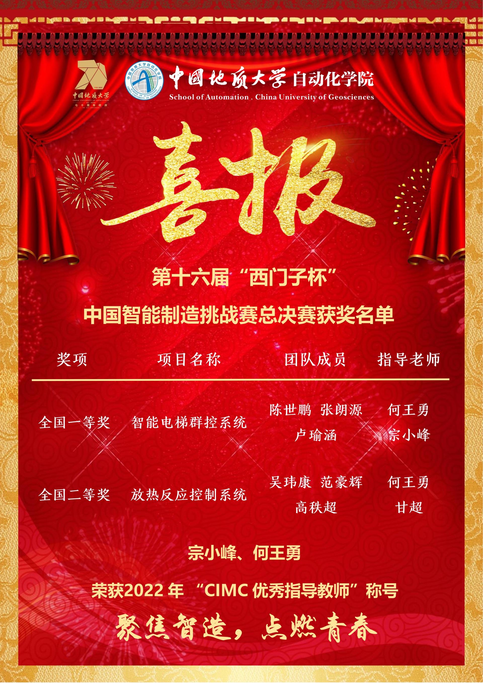 今年3月开赛以来,永利官网高度重视,积极组织动员,挖掘培育本科生团队,共11支团队报名参赛,学院为每支团队配备两名指导老师,经过多轮培训指导,7月在华中赛区的初赛中共斩获特等奖一项与一等奖三项。但由于比赛规则限制,最终确定两个项目组第一名队伍代表学校参加全国总决赛,并在国赛的舞台上荣获全国一等奖一项、全国二等奖一项。宗小峰、何王勇老师荣获“CIMC优秀指导老师”称号,实现了永利官网在“西门子杯”全国总决赛的新跨越。