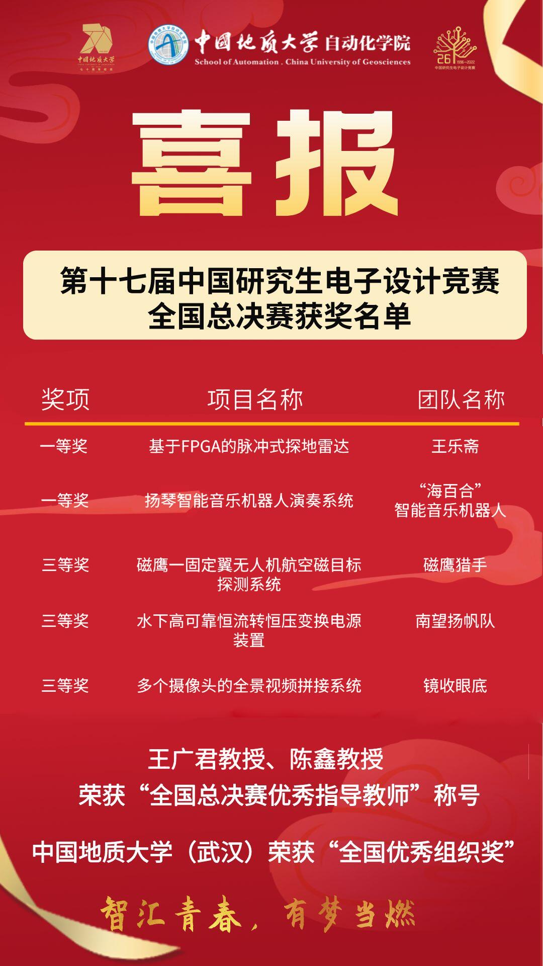 自第十七届中国研究生电子设计竞赛于今年3月份启动以来,在学校研究生院(党委研工部)的大力支持下,永利集团3044官网欢迎您依托“走进自动化”“研究生学术年会”等品牌系列活动,启动校级研电赛组织工作,力求提升参赛作品水平,实现对项目团队全过程,全领域的指导与服务。在10余次的项目辅导和现场路演的耕耘中,推动43支团队携作品分别参加6月上旬、下旬举行的两场校赛答辩评审会,为各参赛队进一步完善作品提供了宝贵意见,并于今年8月率先荣获华中赛区一等奖6项,二等奖6项,三等奖14项,企业命题二等奖1项,刷新了学院研究生参赛以来的历史最好成绩。在全国总决赛的赛前冲刺阶段,学院专门组织指导老师从项目完善、讲解文稿、制作装备、现场路演等方面进行全方位、分层次的指导,帮助团队进一步凝练作品的核心创意,最终实现了获奖层次和获奖数量上的全新突破!