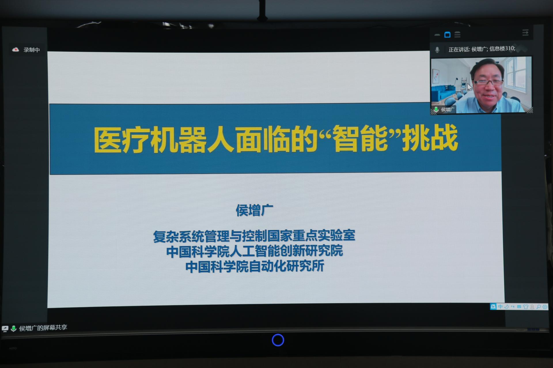 开幕式后,日本东京都立产业技术大学院大学川田诚一教授在现场为师生们作了题为《Some history of Japanese education, Professional graduate school system in Japan and Project Based Leaning(PBL)》的学术报告;中国科学院自动化研究所侯增广研究员通过线上作了题为《医疗机器人面临的“智能”挑战》的学术报告。