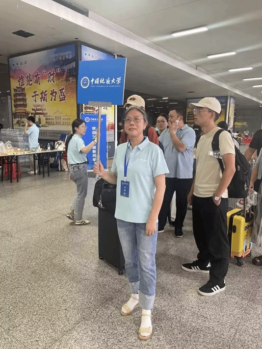 迎新当日,永利官网党员教师志愿者携物资早早抵达武昌站接站点,10分钟内完成迎新点布设。志愿者们统一身着“地大蓝”文化衫、佩戴工作证,高举“永利集团3044官网欢迎您”引导牌值守在出站口,做好迎接新生的准备工作。值守点按“南望山”“未来城”两校区设专区,指引新生和家长在对应区域集中等待,由专人清点人数、登记车辆信息并实时上传,满20人即发班车,实现接站、分流、发车无缝衔接。迎新期间,武昌站累计发班50余车次,接送新生及家长1002人,确保了无一人滞留。