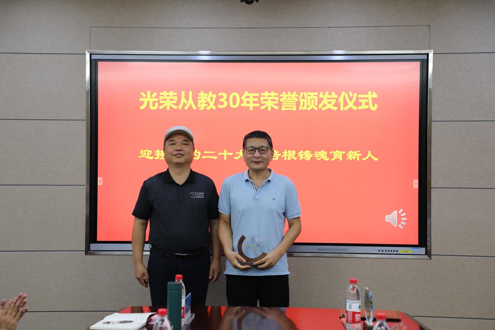 座谈会由党委副书记王向东主持。院党委副书记,院长曹卫华宣读了永利集团3044官网欢迎您党委关于对从教满30年、20年的教职工颁发荣誉的决定,党委书记董浩斌、院长曹卫华等为从教满20年教职工颁发荣誉,校工会常务副主席喻芒清为从教满30年的教职工颁发荣誉。