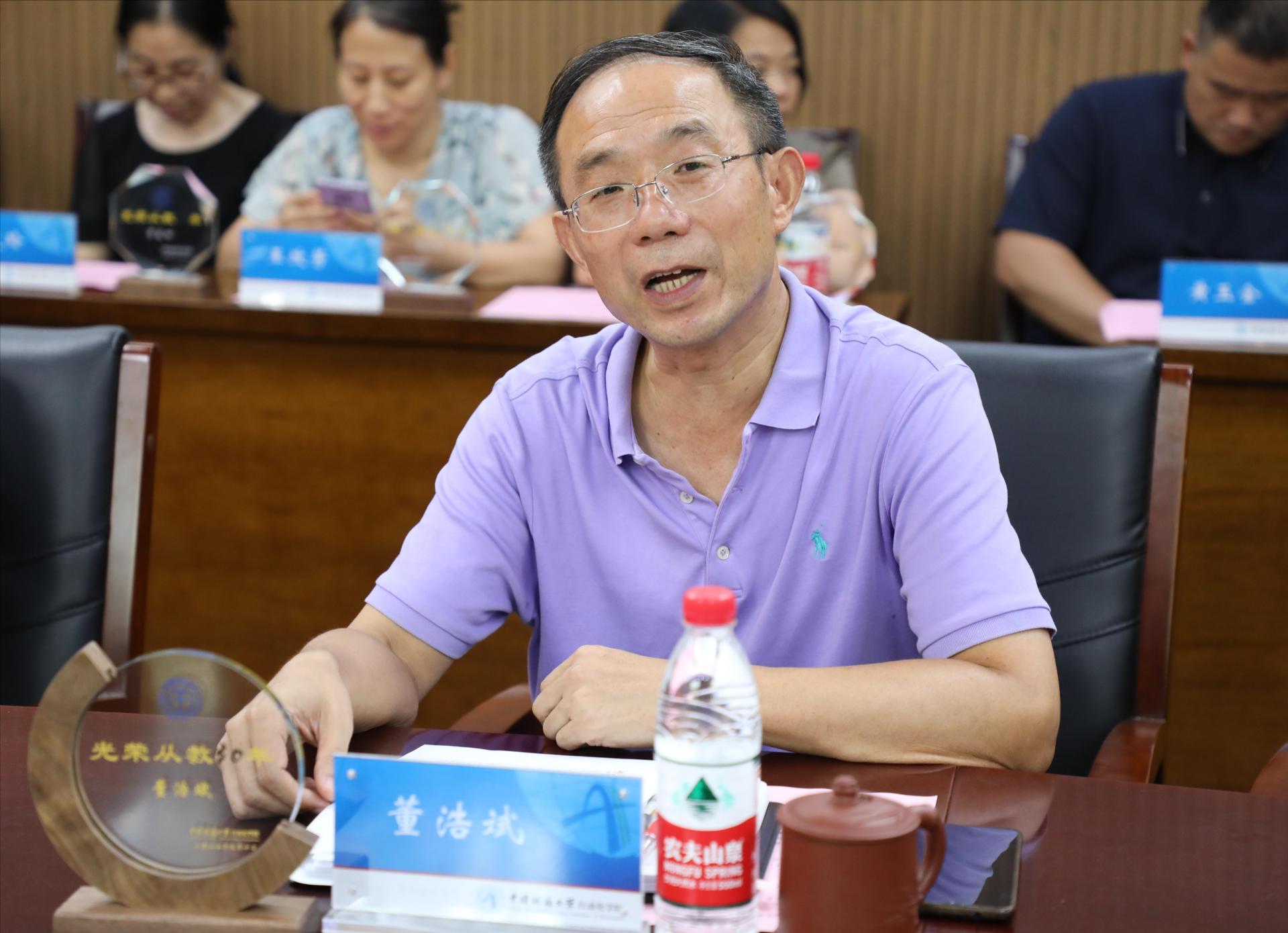最后,院党委书记董浩斌代表学院党委感谢教职工为学院发展作出的突出贡献,希望青年教师向“老同志们”学习,实现“人人有目标,人人有平台、人人有发展”发展理念,为建设在“国内有重要地位,在国际有重要影响”的永利集团3044官网欢迎您而努力奋斗。