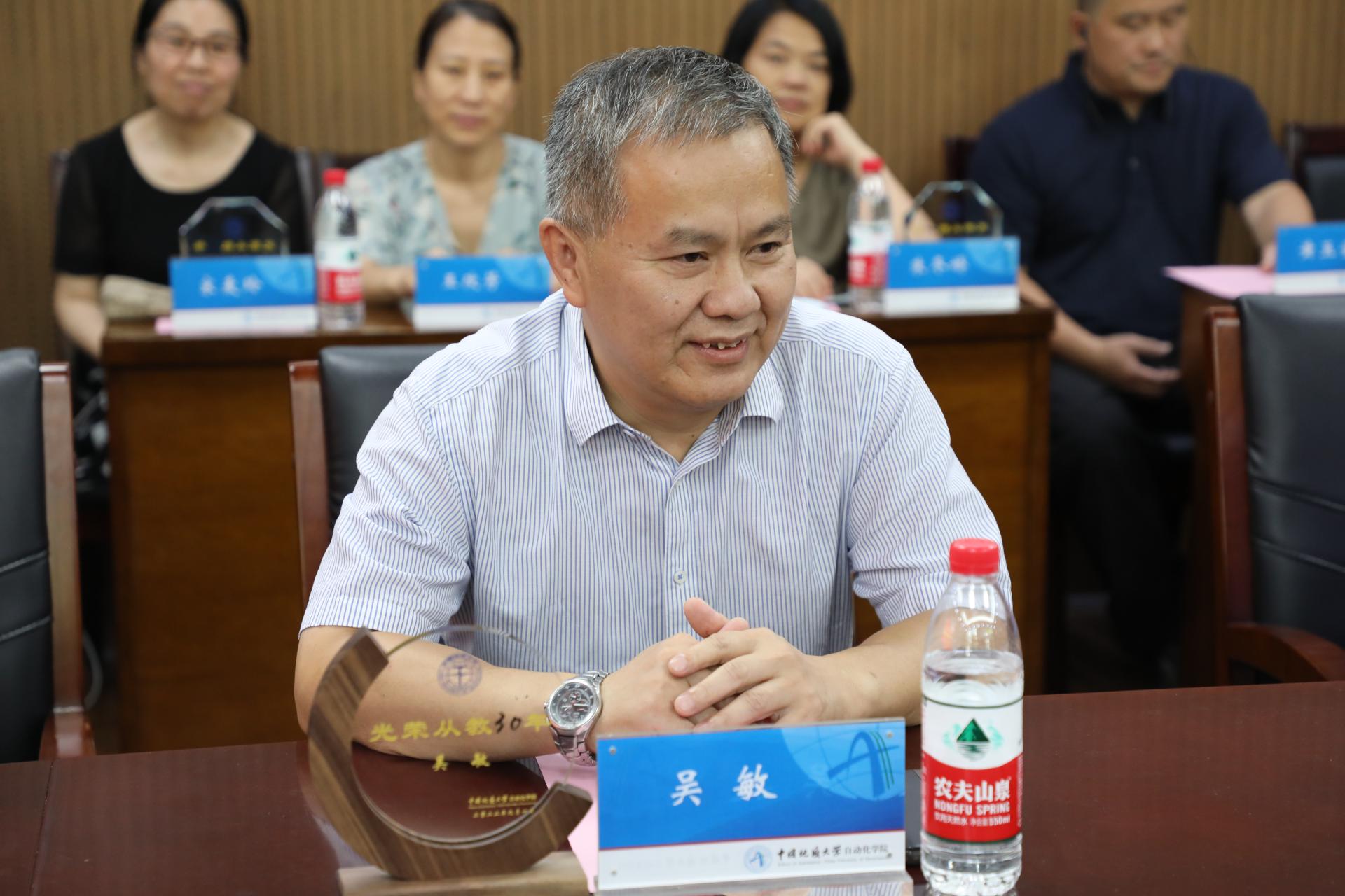 颁奖仪式后,吴敏教授代表从教满30年的教职工讲话。他谈到多年的感悟:一是要以学生为中心,老师要树立“为党育人,为国育才”的基本信念,把学生放在首要位置,没有学生就没有老师;二是要提高业务水平,要从教学方法、教学内容、教学手段、科学研究等多个方面提高执教能力,让学生青出于蓝而胜于蓝;三是老师是一个榜样,老师的行为和德行直接影响着学生,要做好表率,落实好立德树人根本任务。