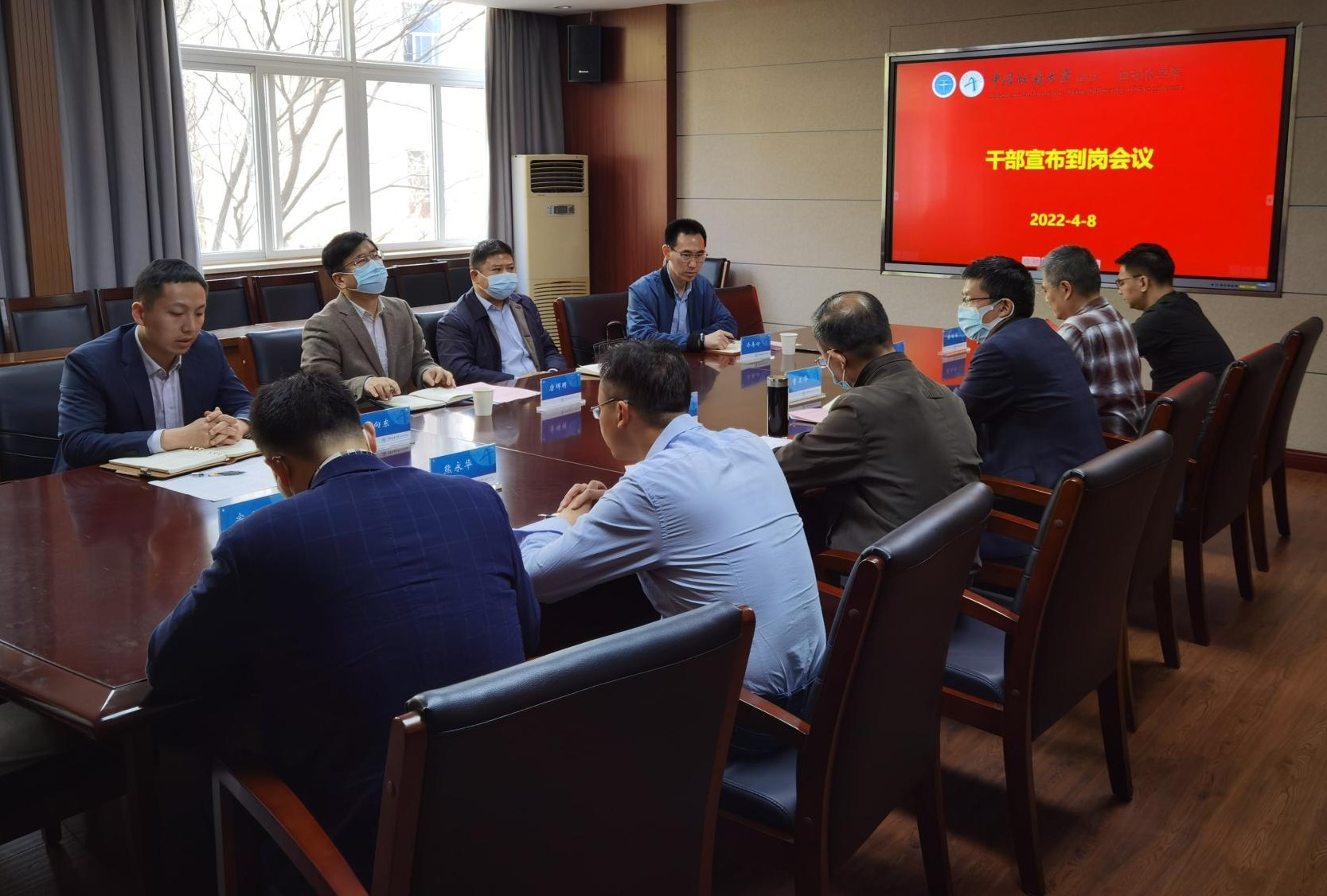 2022年4月8日,学校在永利集团3044官网欢迎您信息楼316会议室召开干部宣布到岗会,校党委副书记唐辉明、校党委组织部副部长冷再心、学院领导班子成员、三级单位负责人、教师代表参会。冷再心副部长主持会议。
