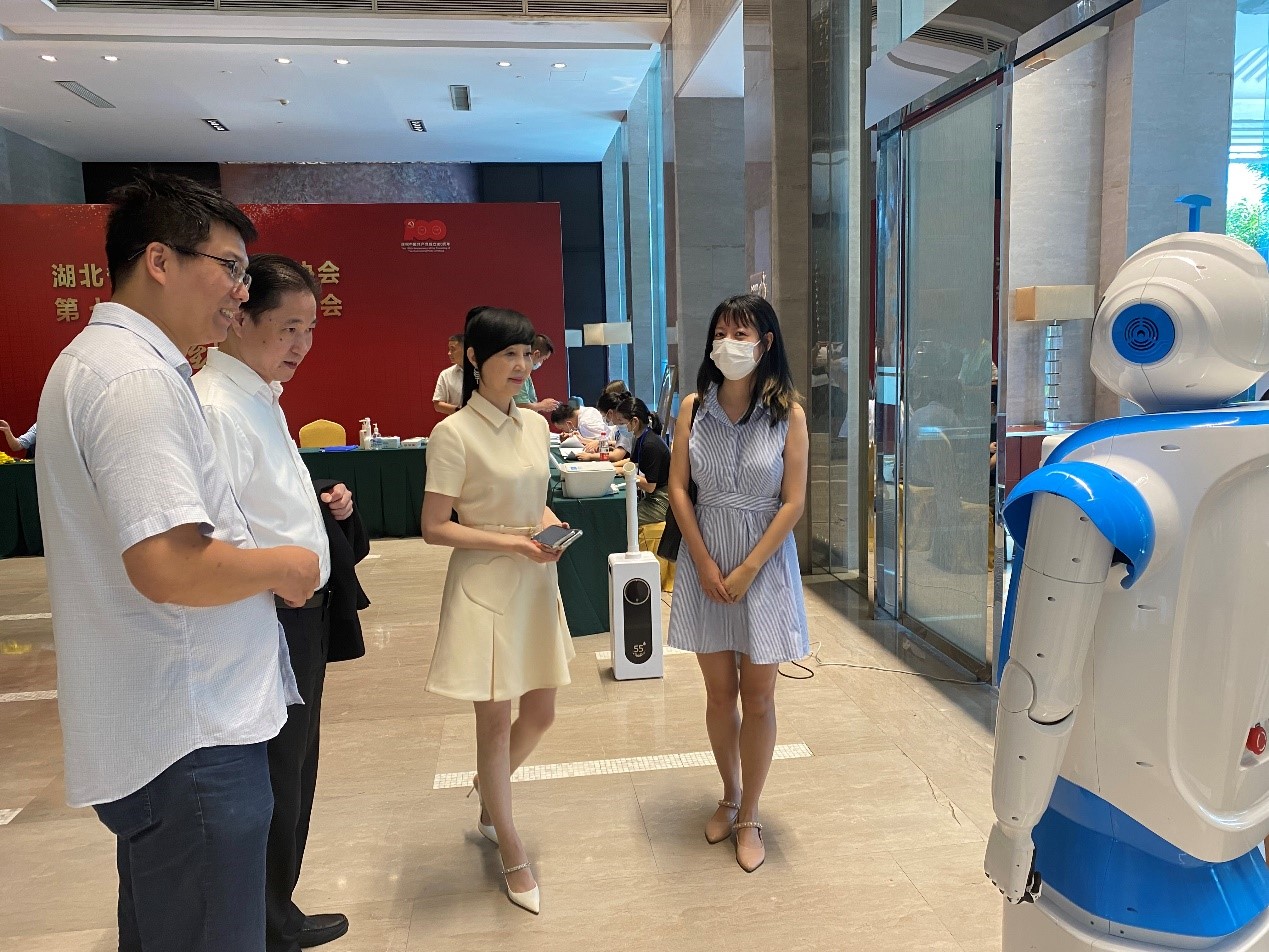 2021年7月22日,在武汉市举办的湖北省烹饪酒店行业协会第七届会员代表大会上,由永利官网情感计算与情感计算人小组自主研制的情感机器人——WEBO(We Robot)应邀参与本次展览。