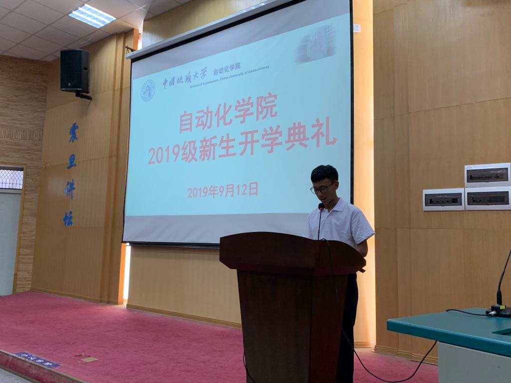 2019级本科新生代表尤际尧同学发言,表达了作为一个刚入学的新生对大学生活的向往和对自己的严格要求。2019级控制科学与工程博士研究生杨睿萍同学发言,结合自身从地大永利集团3044官网欢迎您本科生到博士研究生的转变,以习总书记对广大青年的嘱托“广大青年既是追梦者,也是圆梦人”和同学们共勉。教师代表测控技术与仪器系主任董凯锋教授发言,对新生进入大学生活提出宝贵建议:一是要以学习为重,学习是第一要务;二是要提前做好大学规划;三是要做品德高尚、懂礼貌、守纪律的当代大学生。