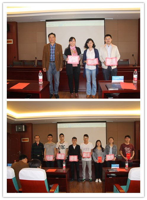 会议开始,由谭文伦老师汇报了学院2015年学生创新创业工作。目前永利官网已形成了浓厚的创新创业氛围和完整的创新创业实践体系,2015年度累计有190人次获得校内外各类科技竞赛奖项,其中有13支团队荣获国家级、省级奖项,永利官网兴趣类科创活动学生参与率达60%以上。大会上宣读了《学院2015年度大学生创新创业工作先进个人表彰决定》,刘振焘、赵娟、杨越三名老师荣获"优秀指导老师"荣誉称号,周浩等七名同学荣获"优秀先进个人"荣誉称号。学生代表周浩和指导老师代表刘振焘先后发言。周浩同学分享了自己的科创经历,感谢学院对自己科创的支持,号召大家加入创新创业行列中来。刘振焘老师以“人无我有,人有我新,人新我快”来解释创新,鼓励大家进行科技创新要有兴趣和敏锐的观察力,希望大家敢为人先,成为新时代的接班人。永利官网副院长王广君教授与副院长金星教授发表动员讲话,希望同学们充分利用师资与实验室条件,大胆地把自己的想法与新意付诸实践。两位院长精彩的讲话激励了在座的每位同学,进一步激发了大家的创新创业热情。