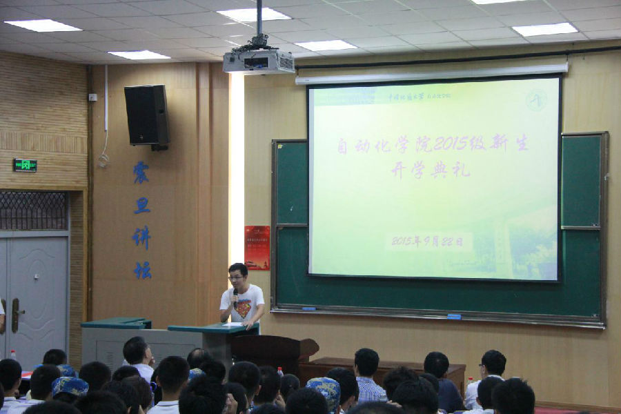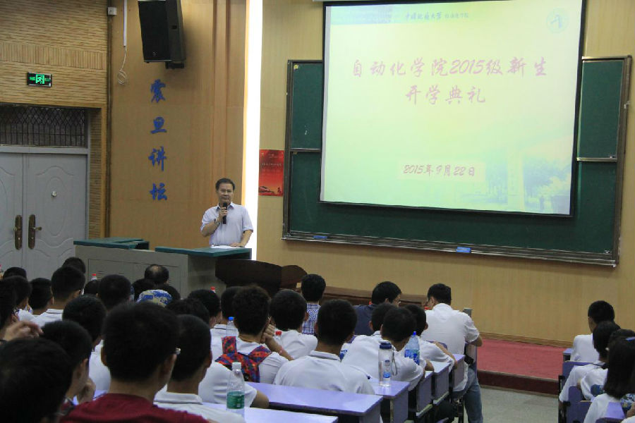 9月22日下午,永利集团3044官网欢迎您2015级新生开学典礼在教三楼111隆重举行。吴敏、董浩斌、曹卫华、王广君、陈鑫、吴涛、李志华、安剑奇、刘小波等院系领导参加了大会。
