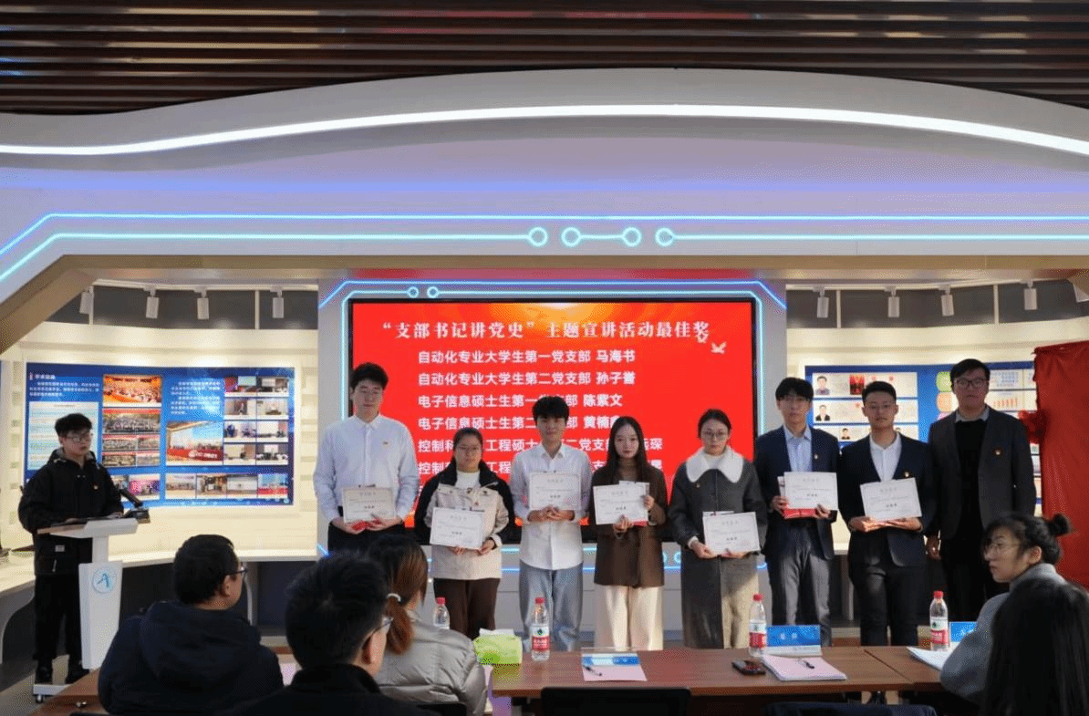 学院党委书记朱荆萨作总结讲话并讲授专题党课。她指出党建工作是凝聚人心的工作,要继续弘扬“支部建在连上”光荣传统,全面提升党支部组织力、凝聚力和战斗力。她强调,各党支部书记要继续对照“七个有力”建设要求,着力打造思想过硬、温暖人心、战斗力强的党支部。一是提升思想修养,筑牢信仰根基。学生党员要始终把握好政治性和先进性的关系,增强理论素养和政治自觉性,坚持真学真信真用、学懂弄通做实,让党的创新理论入脑入心,用党的创新理论凝心铸魂。二是提升业务能力,锤炼过硬本领。学生党支部书记要树牢党员身份意识,自觉修专业、修德行、修党性,以身作则,严于律己,全方位提高履职能力和业务素质,增强自身影响力和感召力,更好将先锋模范作用发挥在平常,用实际行动诠释使命与担当。三是提升组织效能,凝练支部特色。学生支部建设要紧扣高校党建“双创”工作责任目标,将规范性和特色化有效衔接,挖掘特色亮点,创新工作方式,聚力培育更多融汇“新工科”特色的“五型”党支部,促进支部建设与学生成长同向同行,合力推动学院事业向上、向好、向前发展。