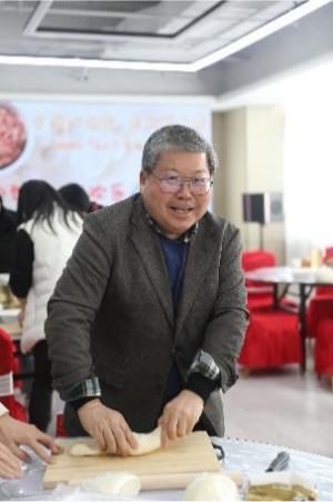 活动现场,大家热情高涨,揉面团、擀面皮、包饺子,偌大的面团,在女教工一双双巧手面前变成了外形各异的饺子,充满寓意和想象力。大家配合默契、各显身手,忙得不亦乐乎,处处洋溢着“家”的味道和温馨。永利官网川田誠一教授也被现场快乐的氛围感染,参与其中,体验中国的传统文化,也使活动增添了跨文化交流的色彩。本次活动,受到女教职工欢迎,也得到学院领导的重视。部分女教职工和领导在完成下午的“预答辩”后赶来参加活动。在谈笑风生中,一盘盘热腾腾的饺子端上了桌子,大家共同分享劳动成果。
