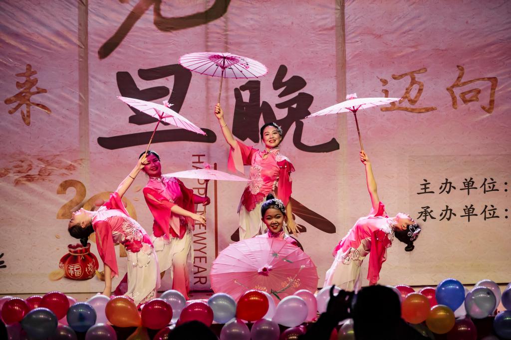 晚会由学院党委书记董浩斌致开场词,董书记回望历史,展望未来,总结了学院2018年取得的不凡成就。晚会正式开始,各种节目精彩纷呈。17、18级班长团支书的开场舞点燃现场气氛;学生会秘书部爵士舞引领潮流;英语演讲激情澎湃;歌曲串烧等节目令人耳目一新,老师们的合唱更是将晚会推向高潮。其中由王广君老师和学生们带来的《最初的梦想》深受好评,正如老师的谆谆教诲,呼吁同学们把梦想紧握手中,砥砺前行。温远洋,范子航同学表演的小品引人捧腹大笑,欢乐之余表达了同学们对学校的热爱。由老师和同学共同表演的《伞舞》让人沉醉其中无法自拔,江南美人美景深入人心。最后,晚会在合唱《我和我的祖国》中完美落幕。