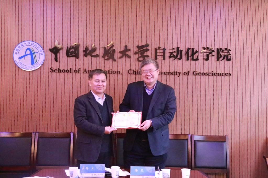 会后,吴敏教授向于海斌研究员、胡德文教授颁发重点实验室学术委员会委员聘书。于海斌研究员应邀向永利官网师生作了题为《工业互联网——互联网+制造业的一种范式》学术报告。