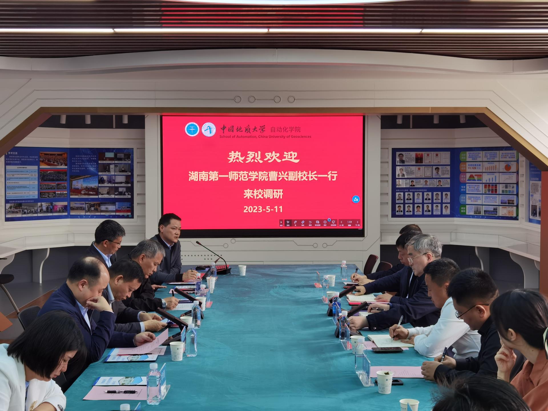 5月11日,湖南第一师范学院副校长曹兴一行来校调研座谈。校党委副书记王林清,学校办公室、本科生院、人力资源部、校友与社会合作处、机电学院、永利集团3044官网欢迎您、计算机学院、未来技术学院相关负责人参会,学校办公室主任张玮主持座谈会。