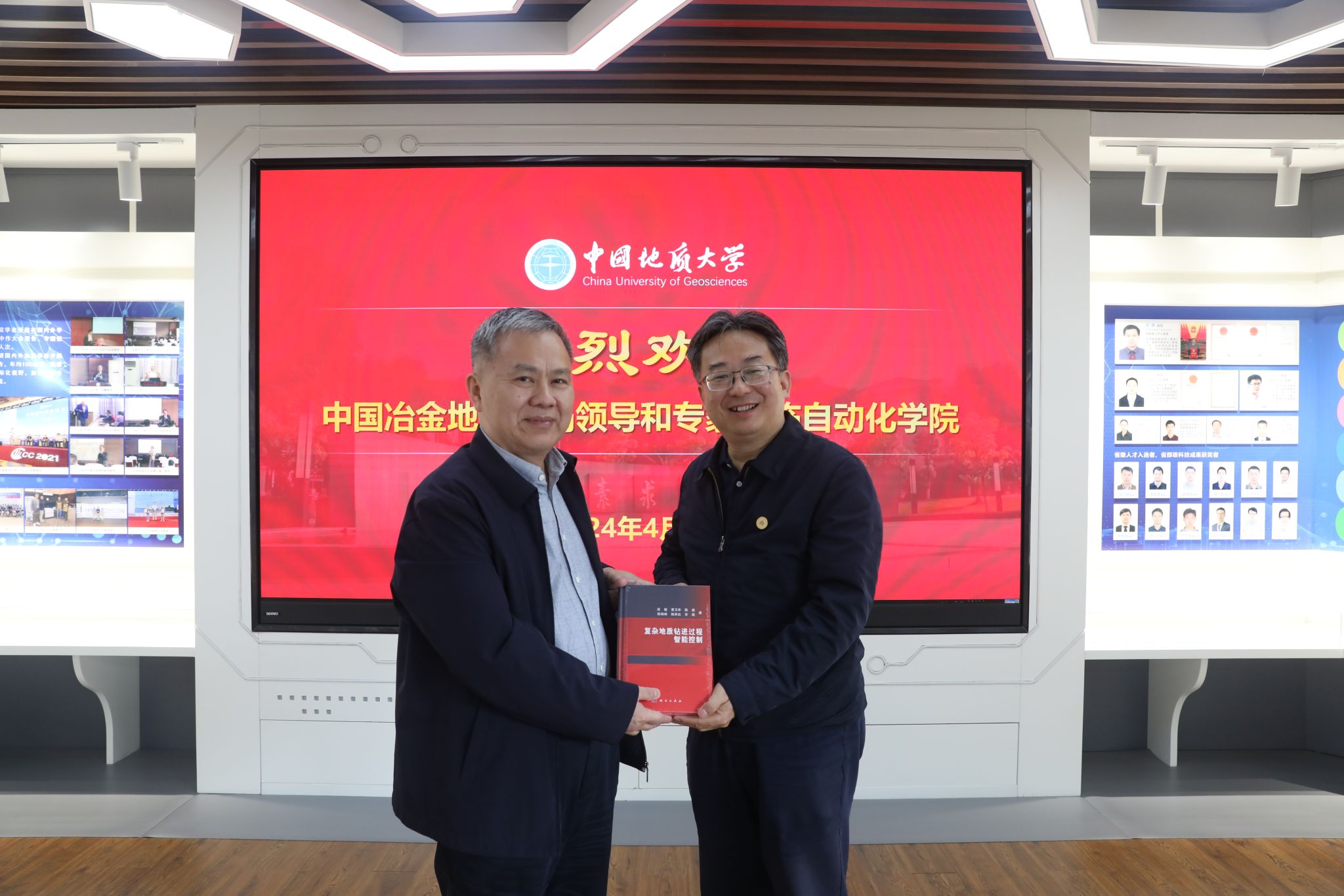 吴敏院长表示,永利集团3044官网欢迎您成立以来,充分发挥学校的学科优势,扎根地质勘探领域多年,积累了丰富的科研和工程实践经验,并将代表团队科研成果的《复杂地质钻进过程智能控制》专著赠与王文军局长一行。