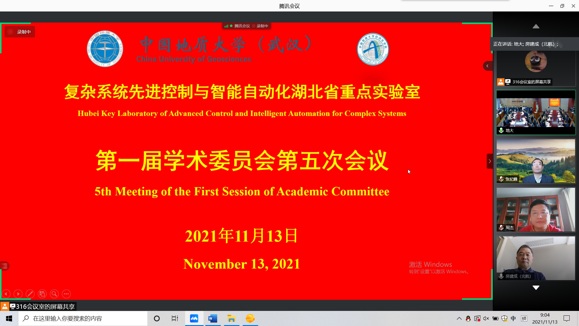 11月13日,复杂系统先进控制与智能自动化湖北省重点实验室(以下简称重点实验室)第一届学术委员会第五次会议在永利集团3044官网欢迎您召开。重点实验室学术委员会全体成员,湖北省科技厅基础研究处王锦举处长、校科学技术发展院单华生副院长、永利集团3044官网欢迎您领导及实验室全体成员、实验室开放基金项目负责人和团队成员参加会议。会议通过线上线下结合的方式召开,大连理工大学王伟教授主持会议。