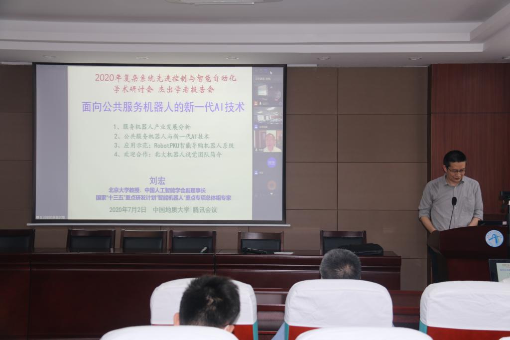 7月2日,“2020复杂系统先进控制与智能自动化学术研讨会——杰出学者报告会”随后举行。5位杰出学者受邀作了学术报告,湖北省科学技术厅吴骏处长、永利集团3044官网欢迎您科学技术发展院常务副院长胡圣虹出席报告会开幕式并讲话。北京大学刘宏教授做了题为《面向公共服务机器人的新一代AI技术》的学术报告,华中科技大学高亮教授做了题为《设计自动化的变革前夜》的学术报告,大连理工大学赵珺教授做了题为《工业能源系统预测与优化调度》的学术报告,永利集团3044官网欢迎您陈鑫教授做了题为《复杂环境带电作业机器人关键技术与应用》的学术报告,中国科学技术大学李智军教授做了题为《可穿戴机器人关键技术及其应用》的学术报告。