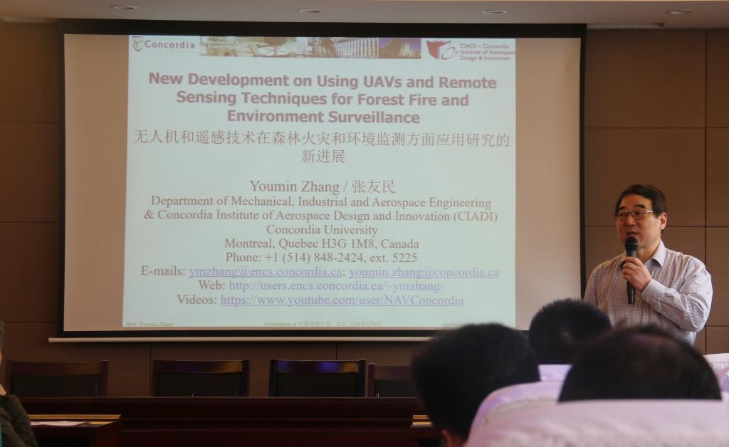 38日,加拿大康考迪亚大学张友民教授来永利官网作了题为《New Development on Using UAVs and Remote Sensing Techniques for Forest Fire and Environment Surveillance》的学术报告。