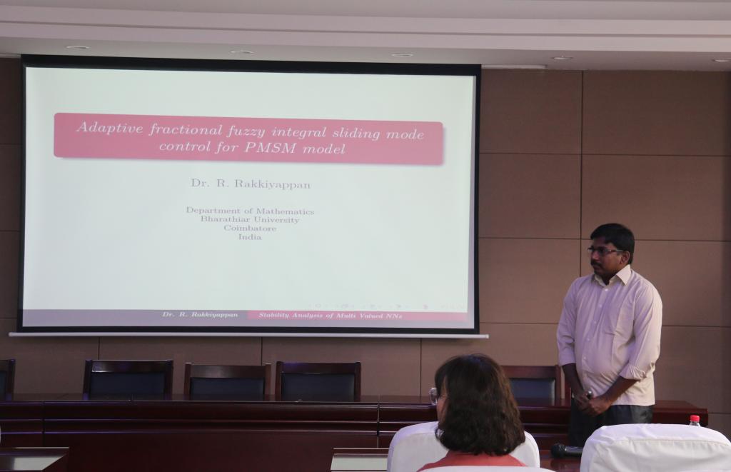 530日,印度巴拉蒂尔大学助理教授Rakkiyappan Rajan来永利官网作了题为《Adaptive fractional fuzzy integral sliding mode control for PMSM model》的学术报告。