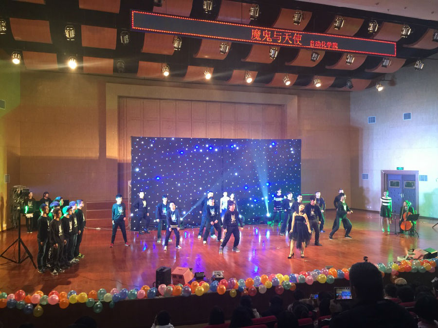 永利官网231152班歌舞节目《魔鬼与天使》以男女主角的爱恋为背景,伴随大提琴、小提琴和舞蹈,并融入具有永利官网特色的机械舞,给现场观众留下了深刻印象。据悉,此次SuperClass比赛共计12个学院参赛,各学院选拔一支队伍参加决赛,评委由专业老师和学生代表担任。