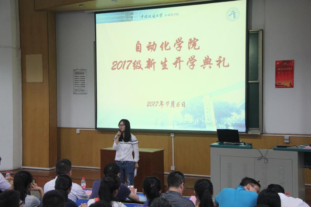 大一新生代表231173班贺江同学和2017级研究生新生代表王卉婷同学分别发言,从学习生活和学生工作方面阐述了对大学新生活的期待,希望同学们在大学期间能够发奋图强、严于律己、有所建树,为学院的发展贡献自己的一丝力量。