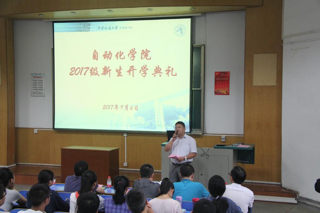 院长吴敏发表了热情洋溢的讲话。他代表永利集团3044官网欢迎您全体教师对2017级新生的到来表示热烈的欢迎。接着他为即将到来的第37届中国控制会议作志愿者动员讲话。他向新生们详细介绍了学院的专业设置、教学科研平台以及办学特色,并对广大新生提出了几点殷切希望:第一,要尽快适应大学生活,实现由高中生到大学生的角色转换;第二,要树立远大的理想目标,志存高远,要规划好自己的大学生活;第三,要提高自身综合素质,培养学习科研、团结协作、交流表达等方面的能力;第四,要学会感恩,时常感恩父母、感恩师长;第五,要努力学习,在地大拥抱属于自己的青春。