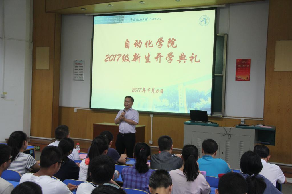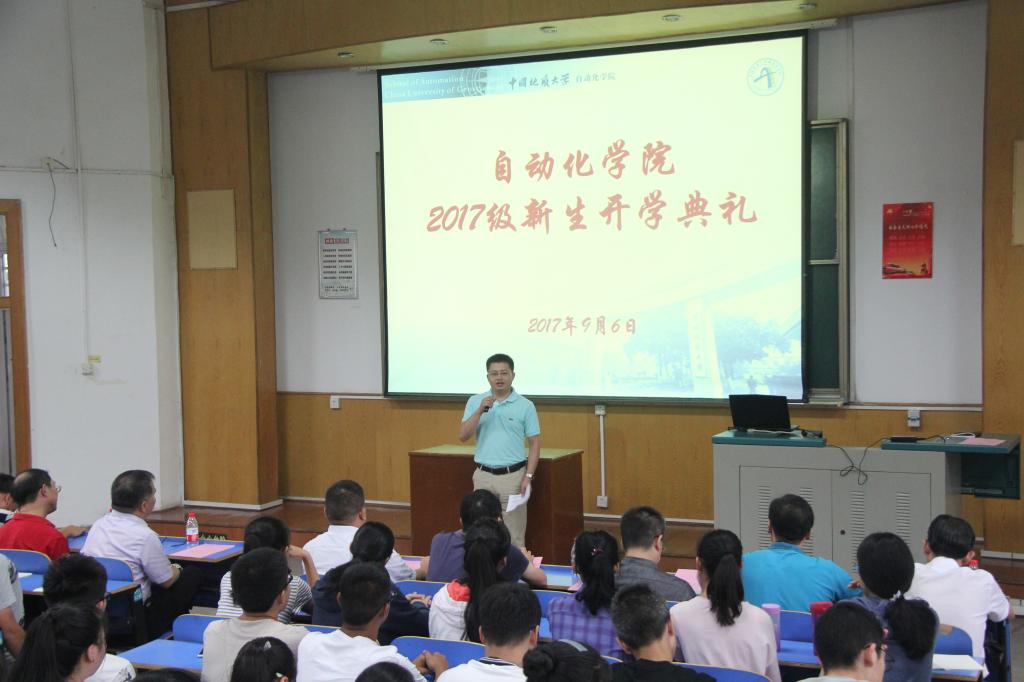 (通讯员 任艺)一年一度秋风劲,八方学子来相聚。9月6日上午,永利集团3044官网欢迎您2017级新生开学典礼在教一楼二阶隆重举行。院长吴敏教授,院党委书记董浩斌教授,副院长曹卫华、金星、王广君、陈鑫教授,自动化系熊永华、刘峰、宗小峰教授,测控系李志华副教授、实验中心副主任刘小波老师以及教师代表等出席典礼。永利集团3044官网欢迎您2017级全体本科生、研究生参加了开学典礼。典礼由院党委副书记何建新主持。